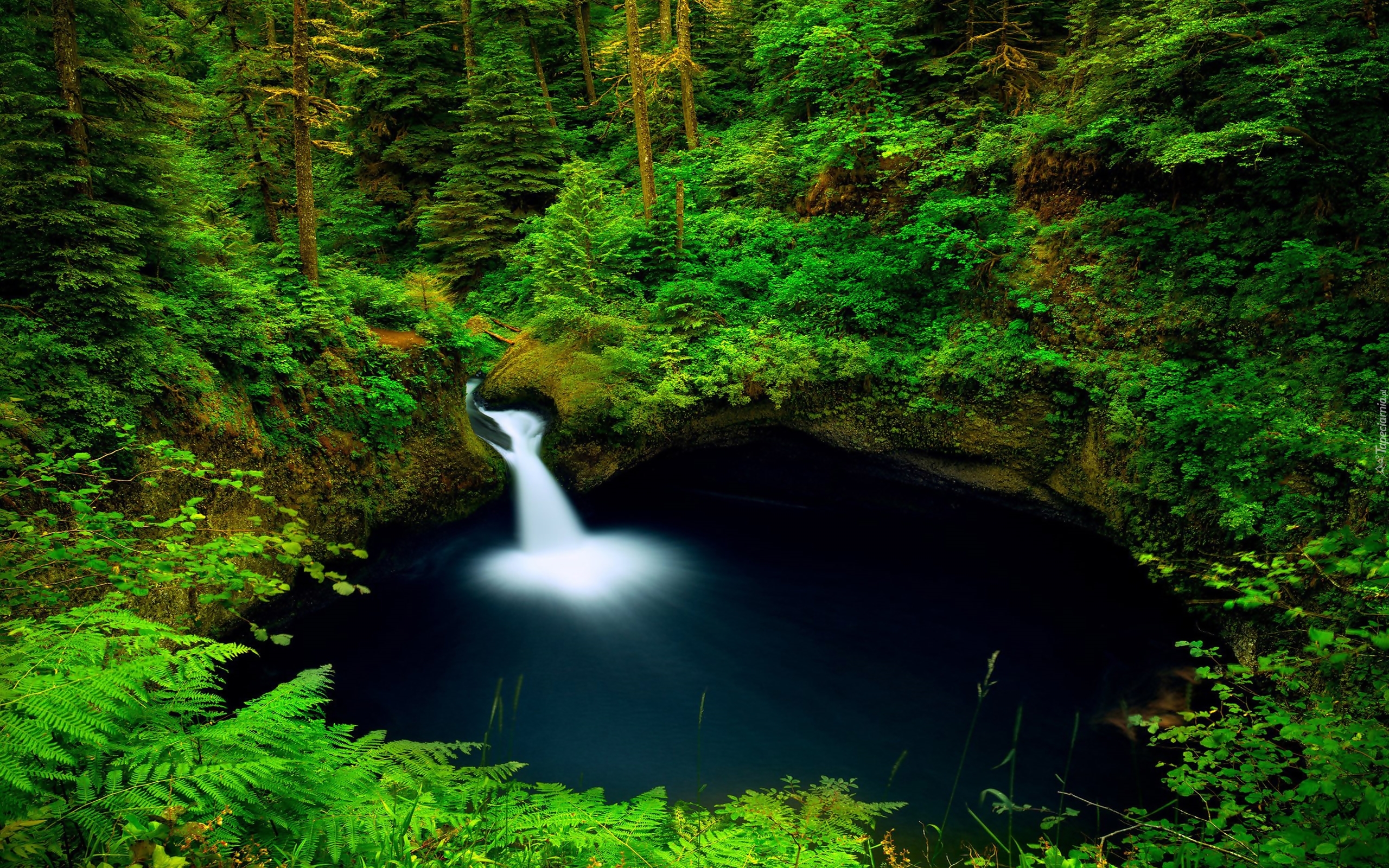 Edytor tapety: Wodospad Punch Bowl Falls w Oregonie wśród roślinności