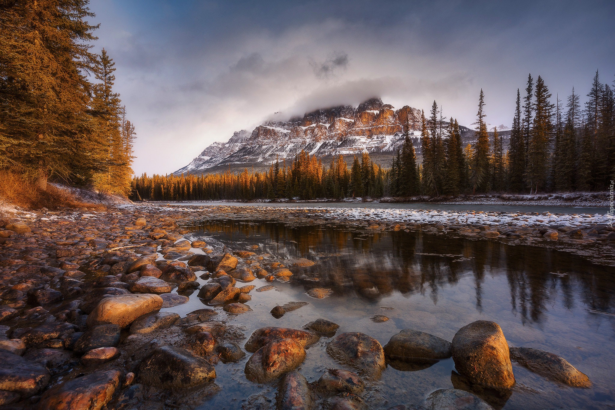 Edytor tapety: Jezioro o kamienistym brzegu w kanadyjskiej prowincji Alberta