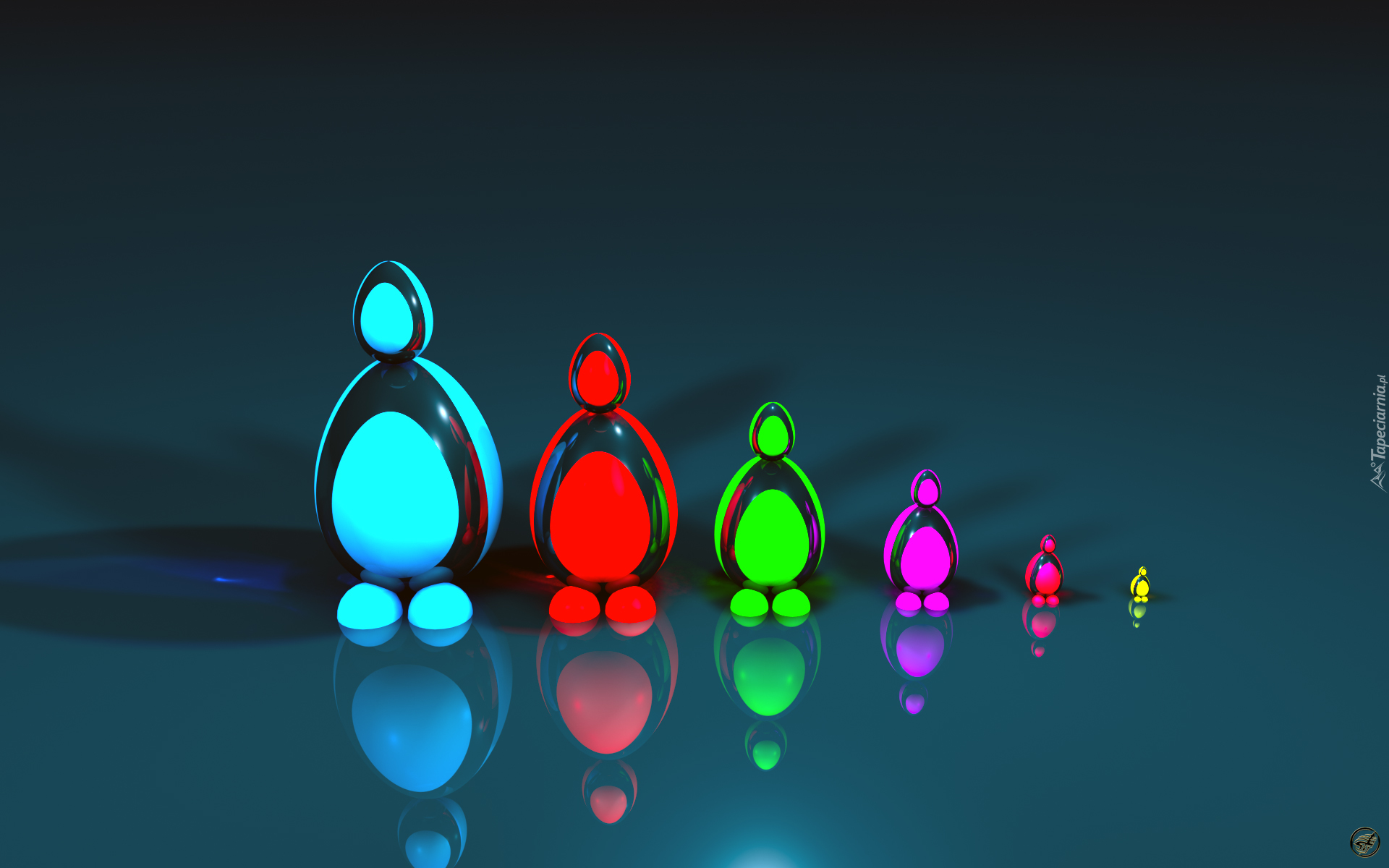 Edytor tapety: Abstrakcyjne kolorowe pingwiny w 3D