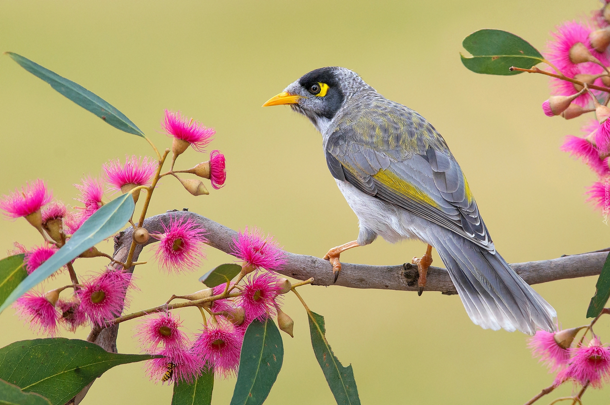 Edytor tapety: Pochodzący z Australii miodożer maskowy siedzi na gałęzi