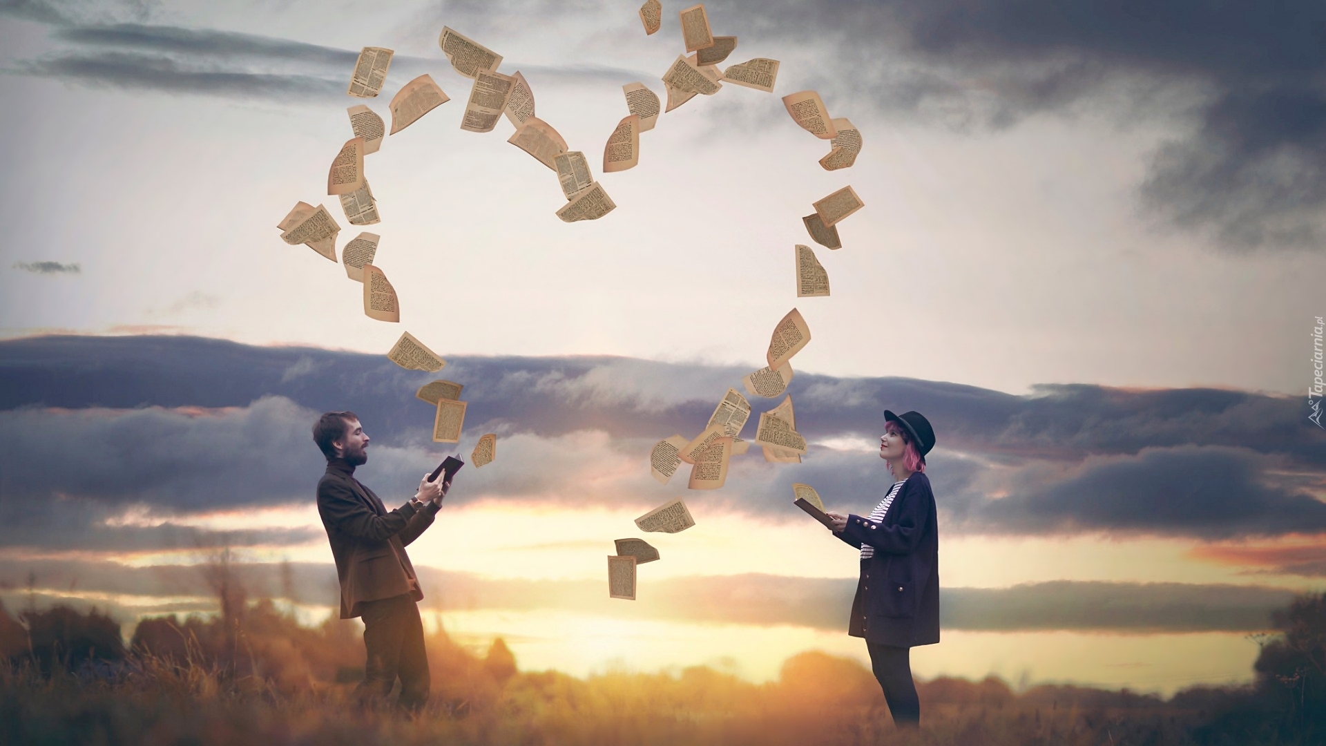 Edytor tapety: Kobieta, mężczyzna i serce z zapisanych kartek