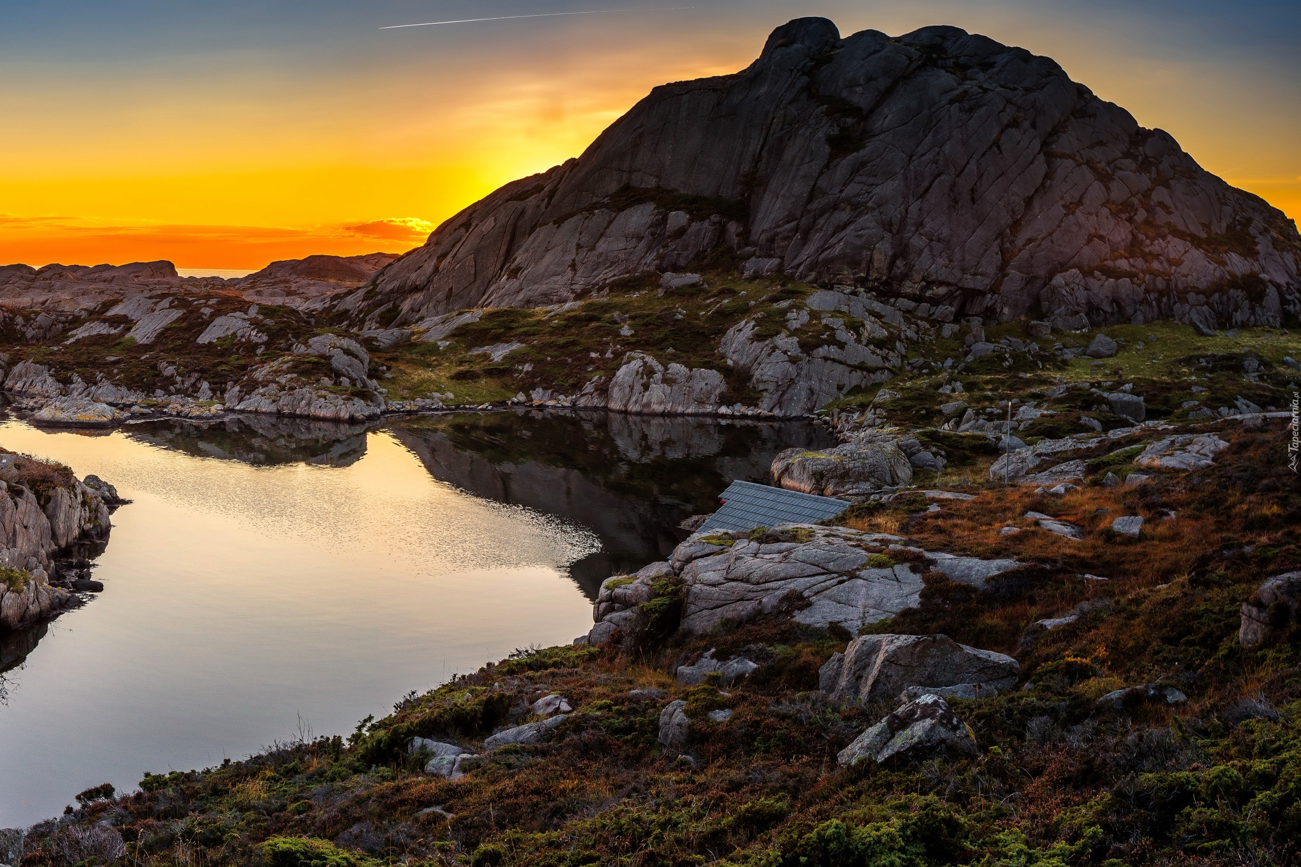 Edytor tapety: Norweskie jezioro wśród skał w okręgu Rogaland