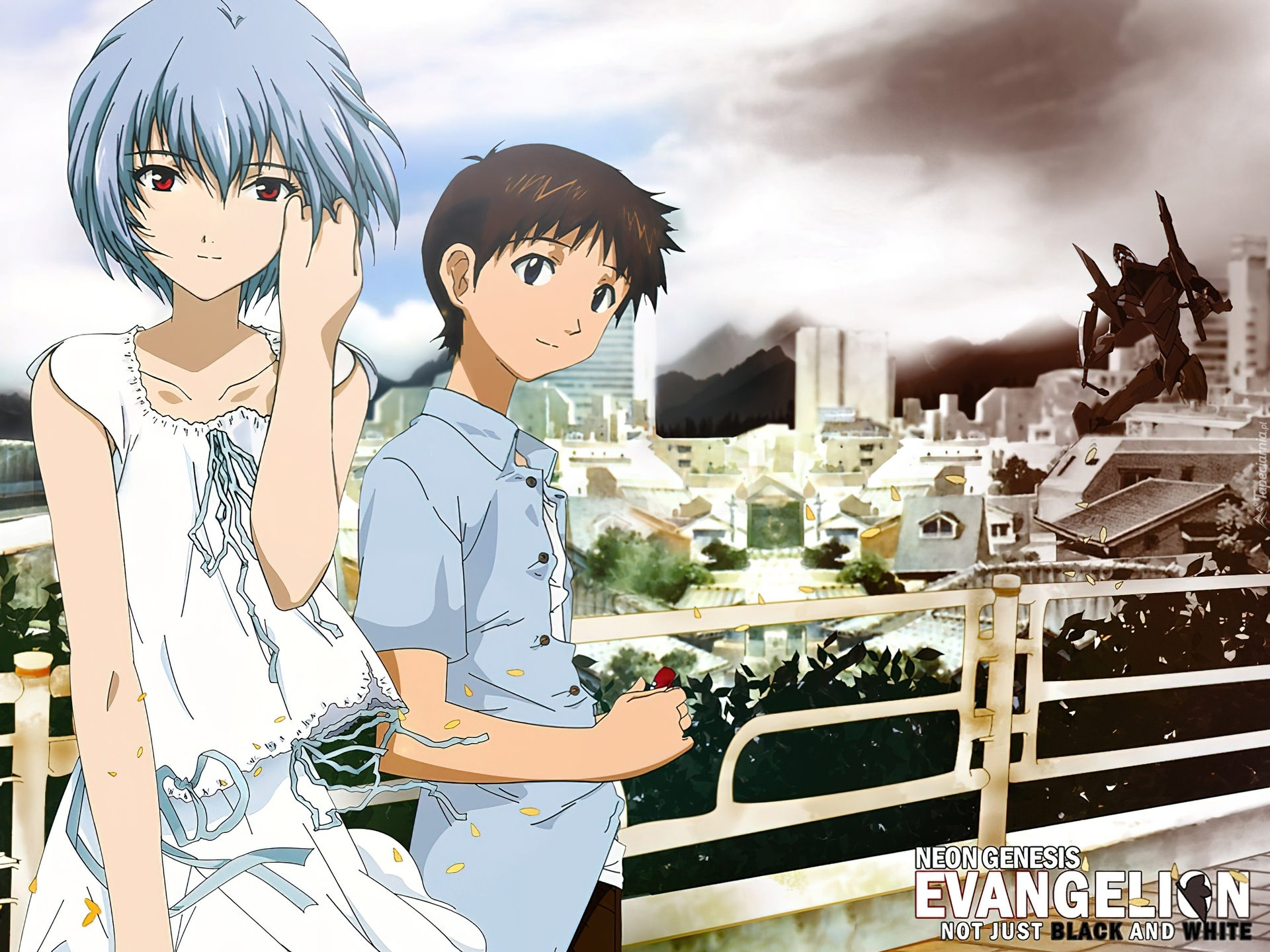 Edytor tapety: Neon Genesis Evangelion, miasto, ludzie