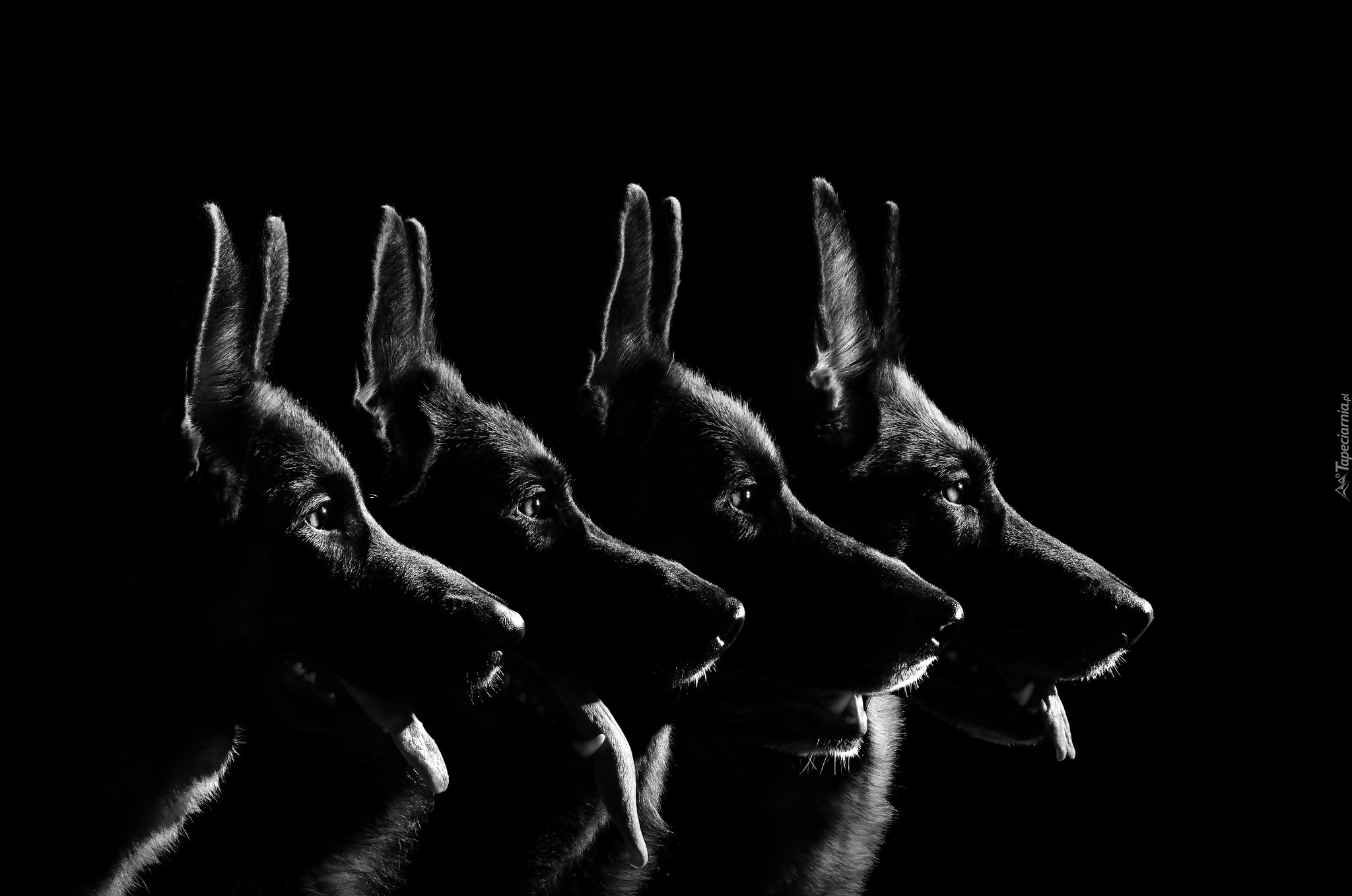 Edytor tapety: Cztery czarne owczarki niemieckie nocą