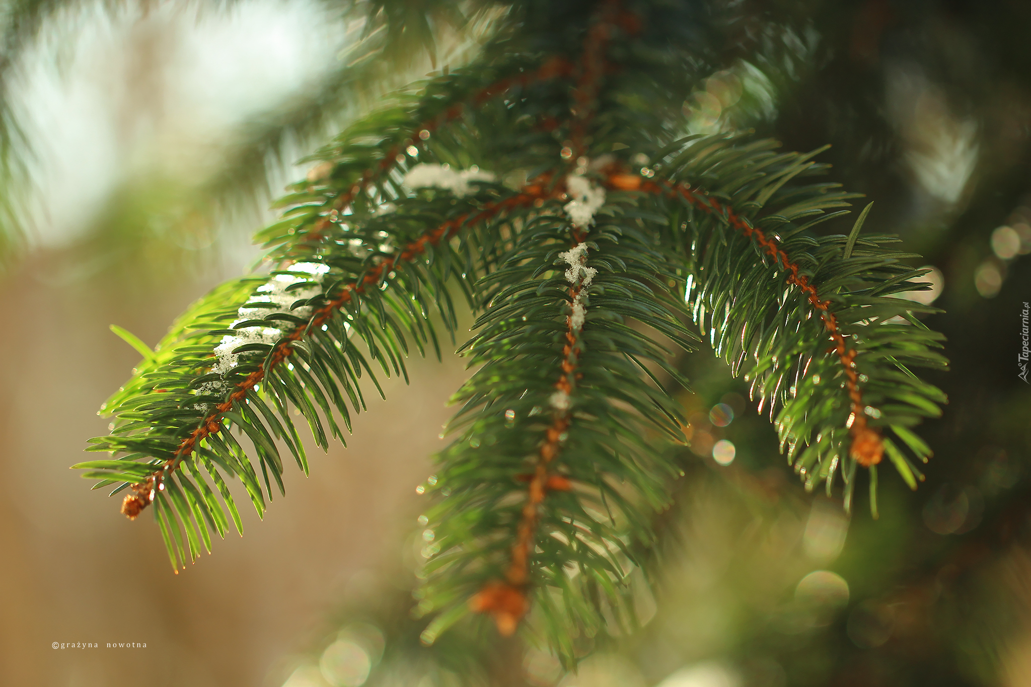 Edytor tapety: Gałązka jodły oprószona śniegiem