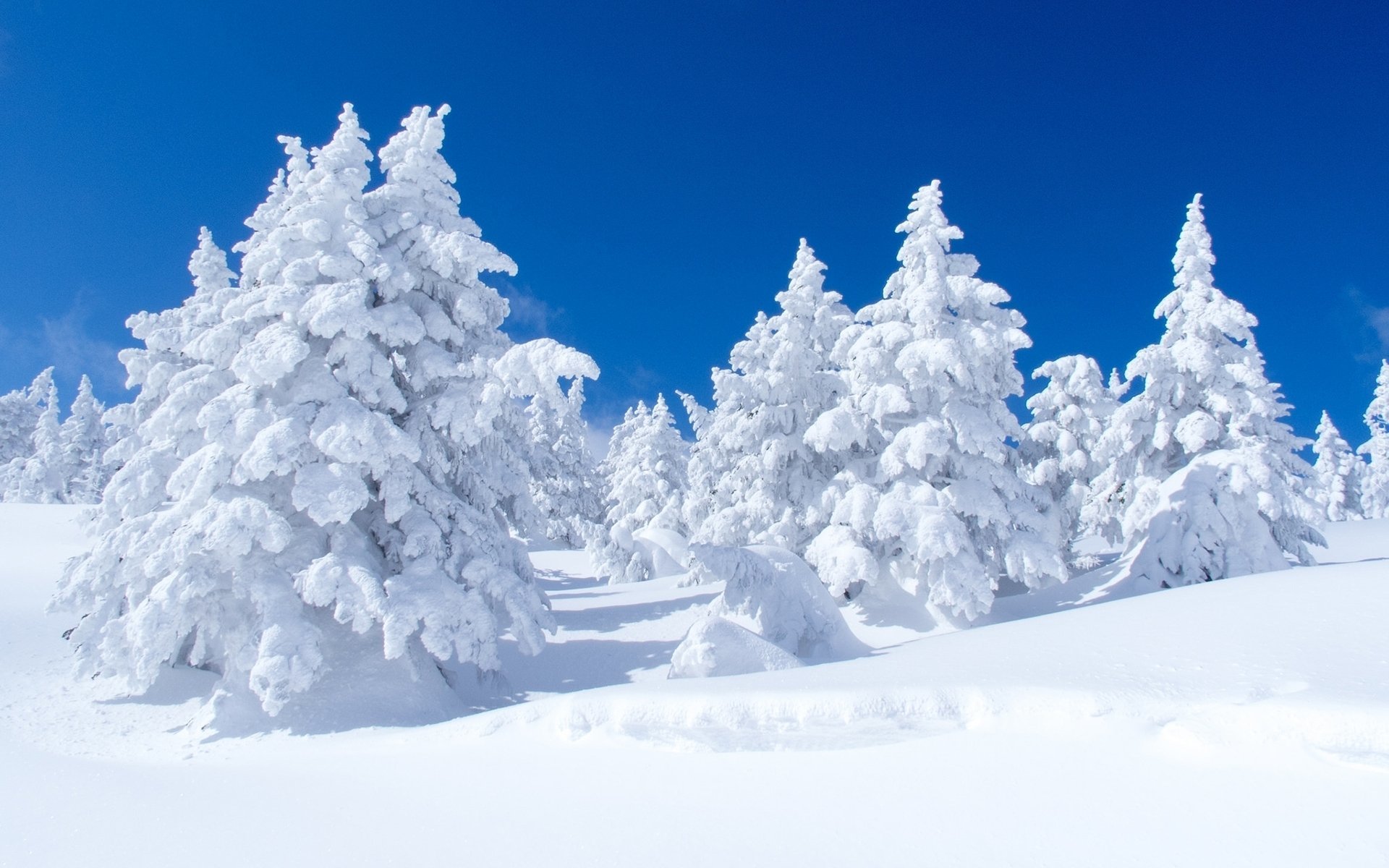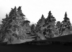Edytor tapety: Ośnieżone świerki na tle nieba