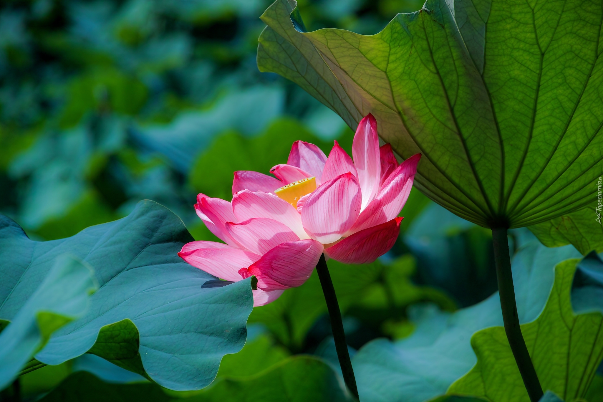 Edytor tapety: Różowy rozwinięty kwiat lotosu