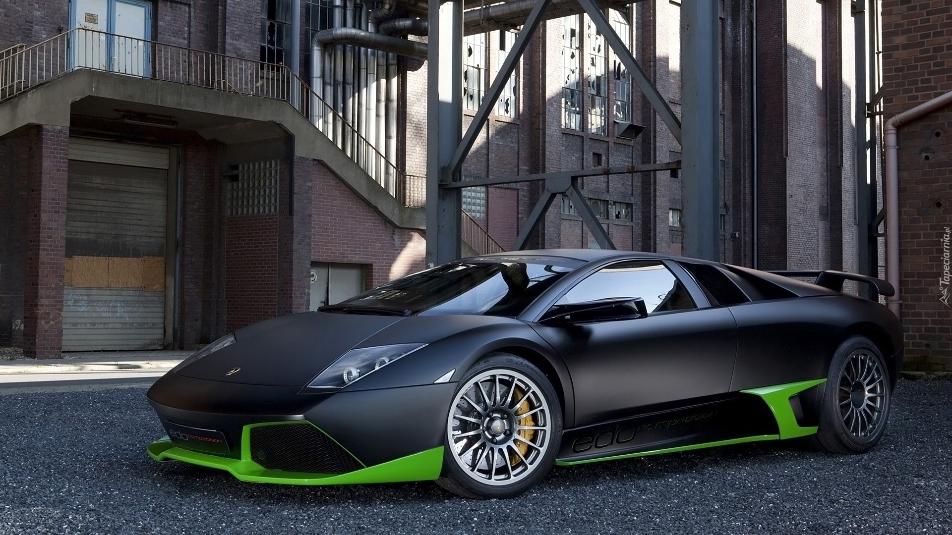 Edytor tapety: Lamborghini Murcielago LP750 stoi na ulicy obok budynku
