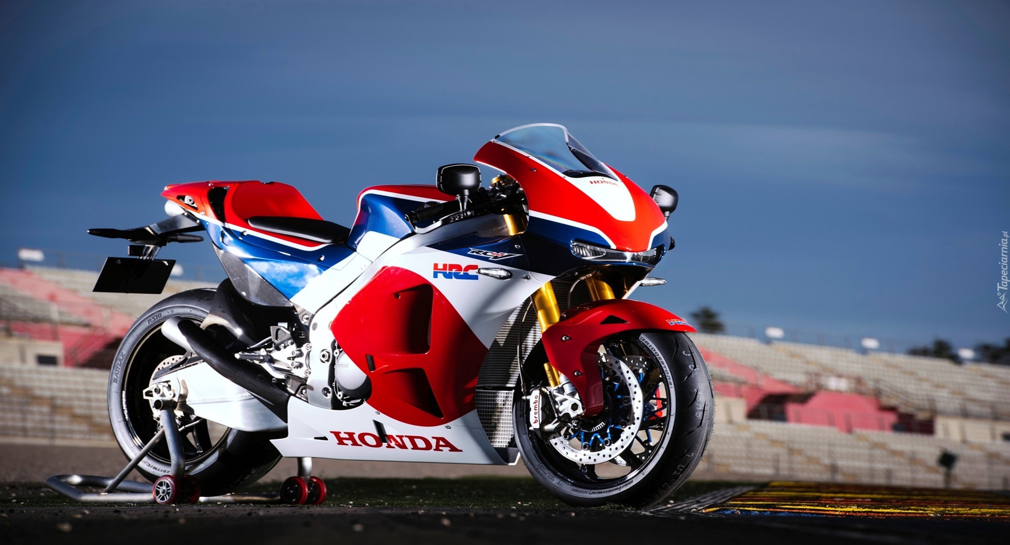Edytor tapety: Sportowy motocykl Honda RC213V-S na tle stadionu