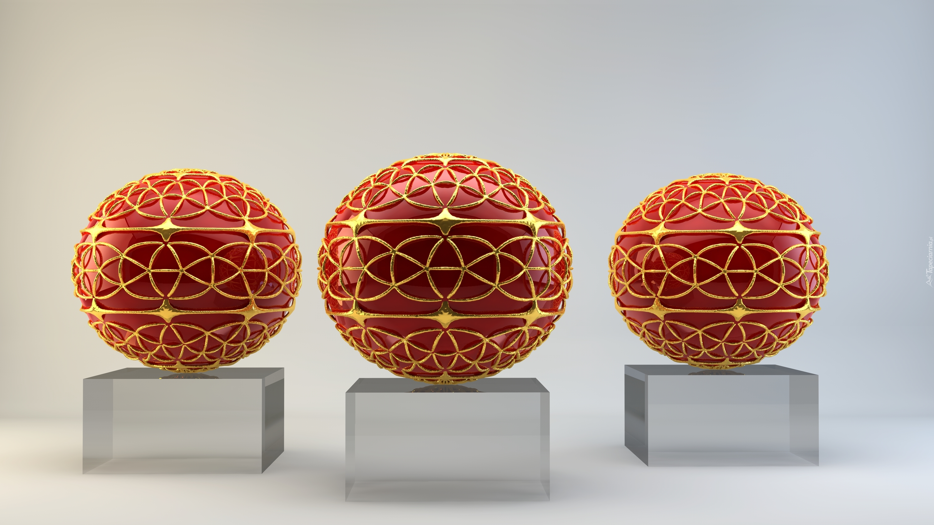 Edytor tapety: Graficzne fraktalowe kule na podium w 3D