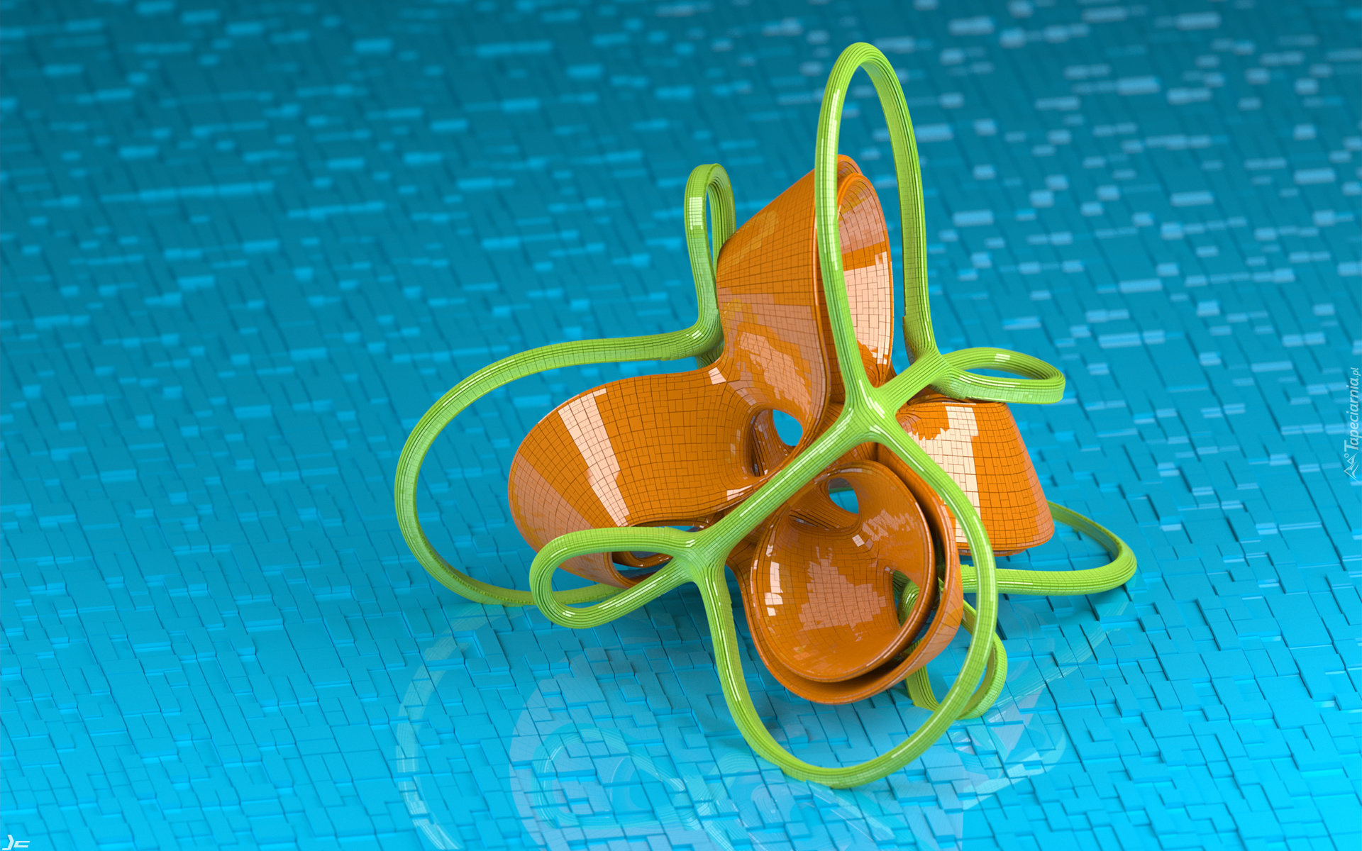 Edytor tapety: Pomarańczowo-zielony obiekt w grafice 3D