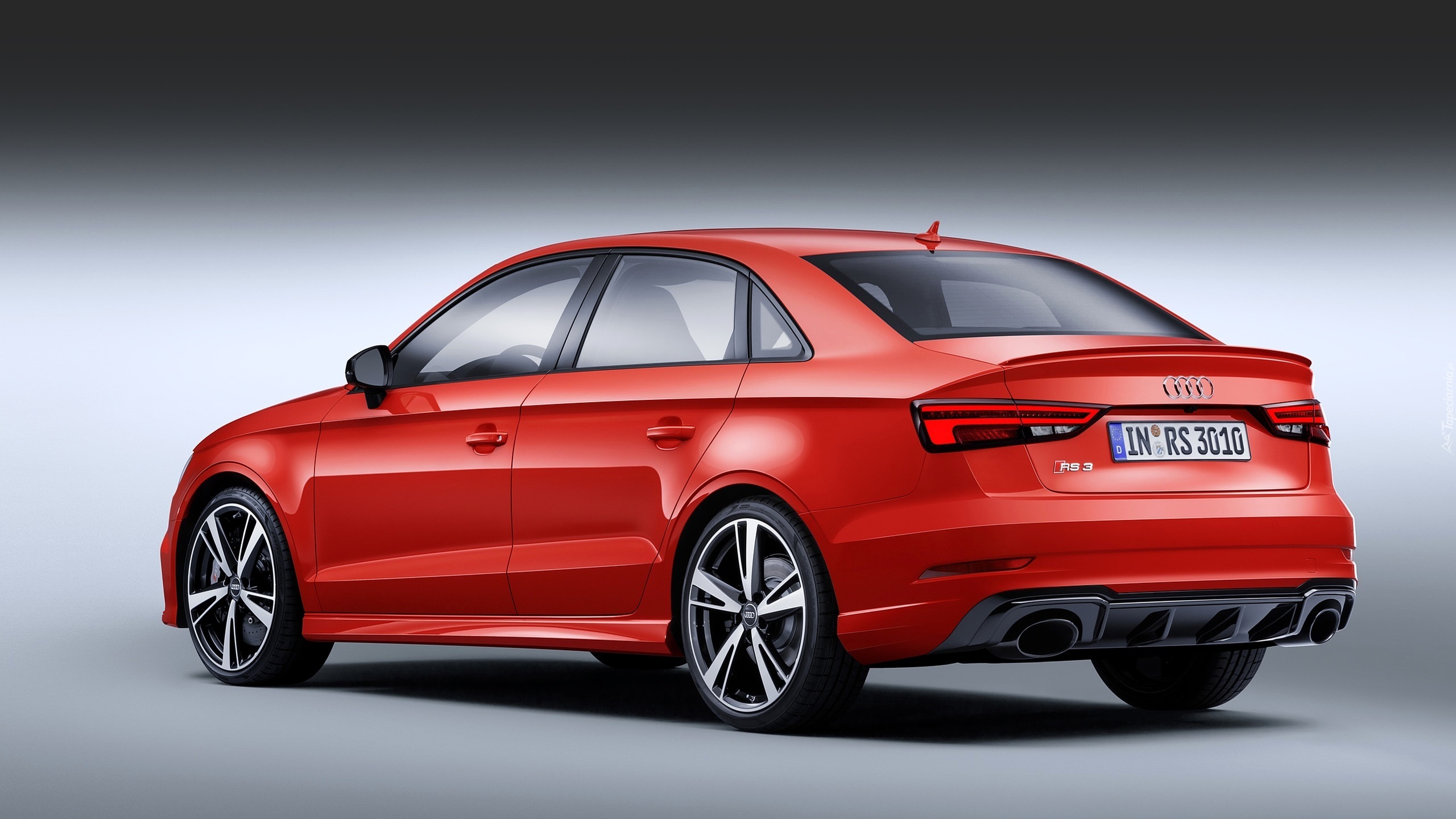 Edytor tapety: Czerwone Audi RS3 Sedan prezentuje tył
