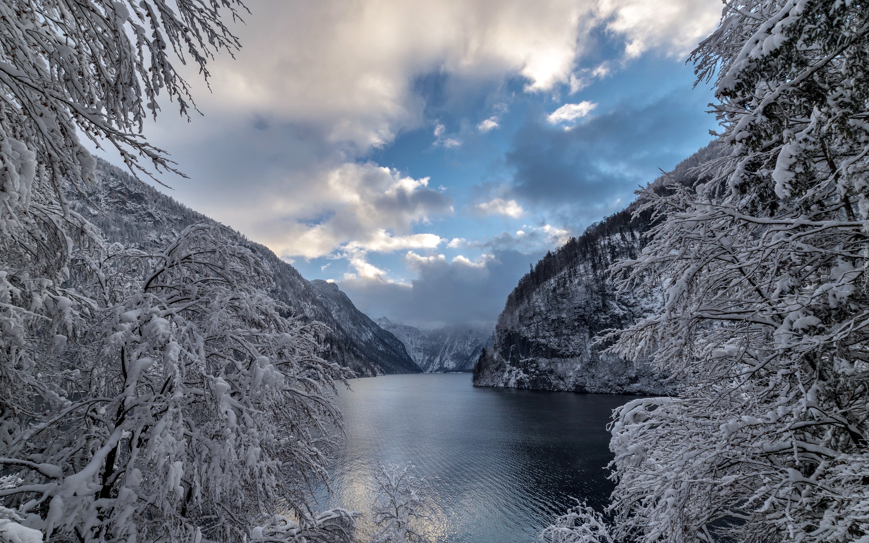 Edytor tapety: Jezioro Königssee i ośnieżone Alpy bawarskie
