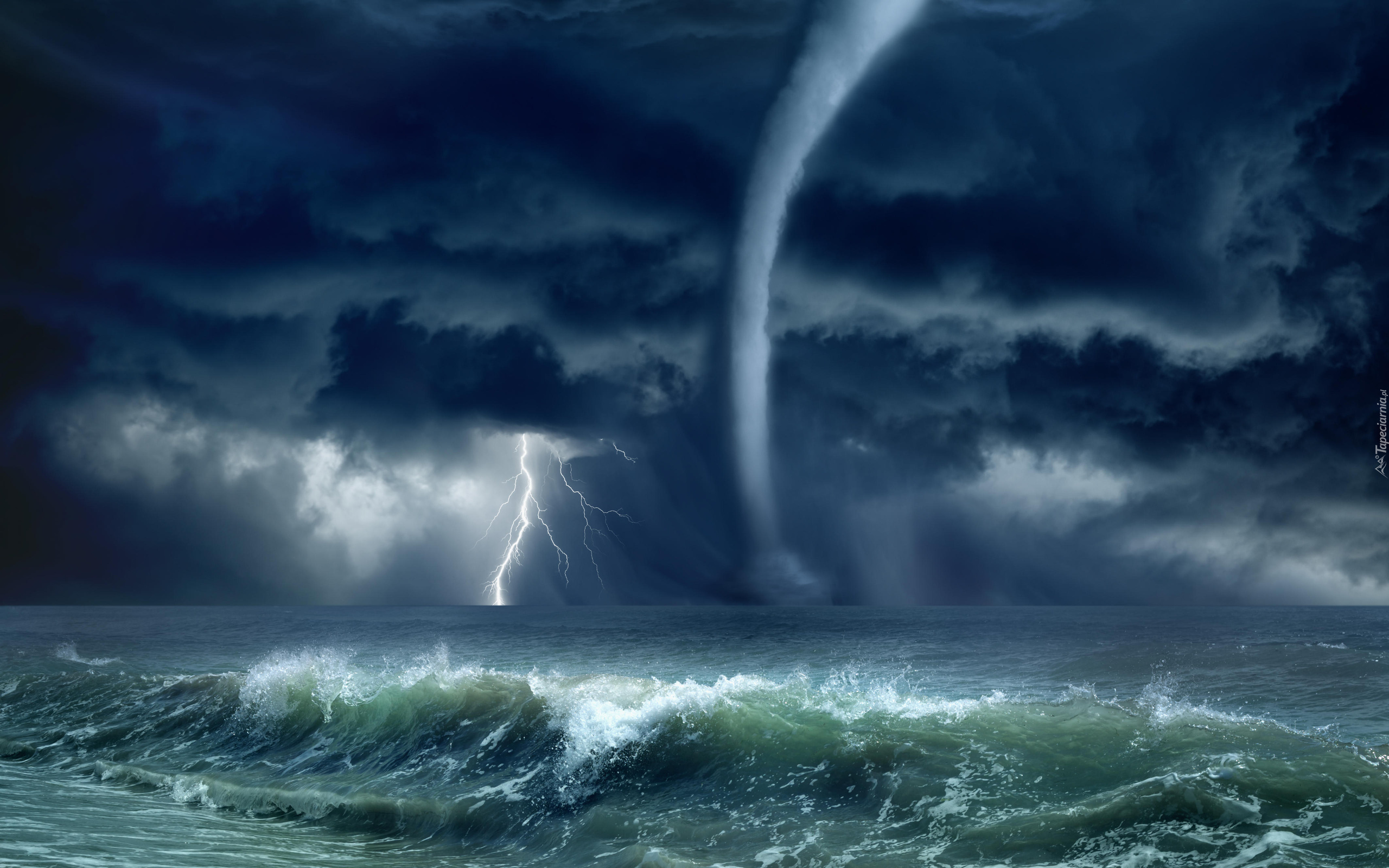 Edytor tapety: Burza z błyskawicami i tornado nad morzem