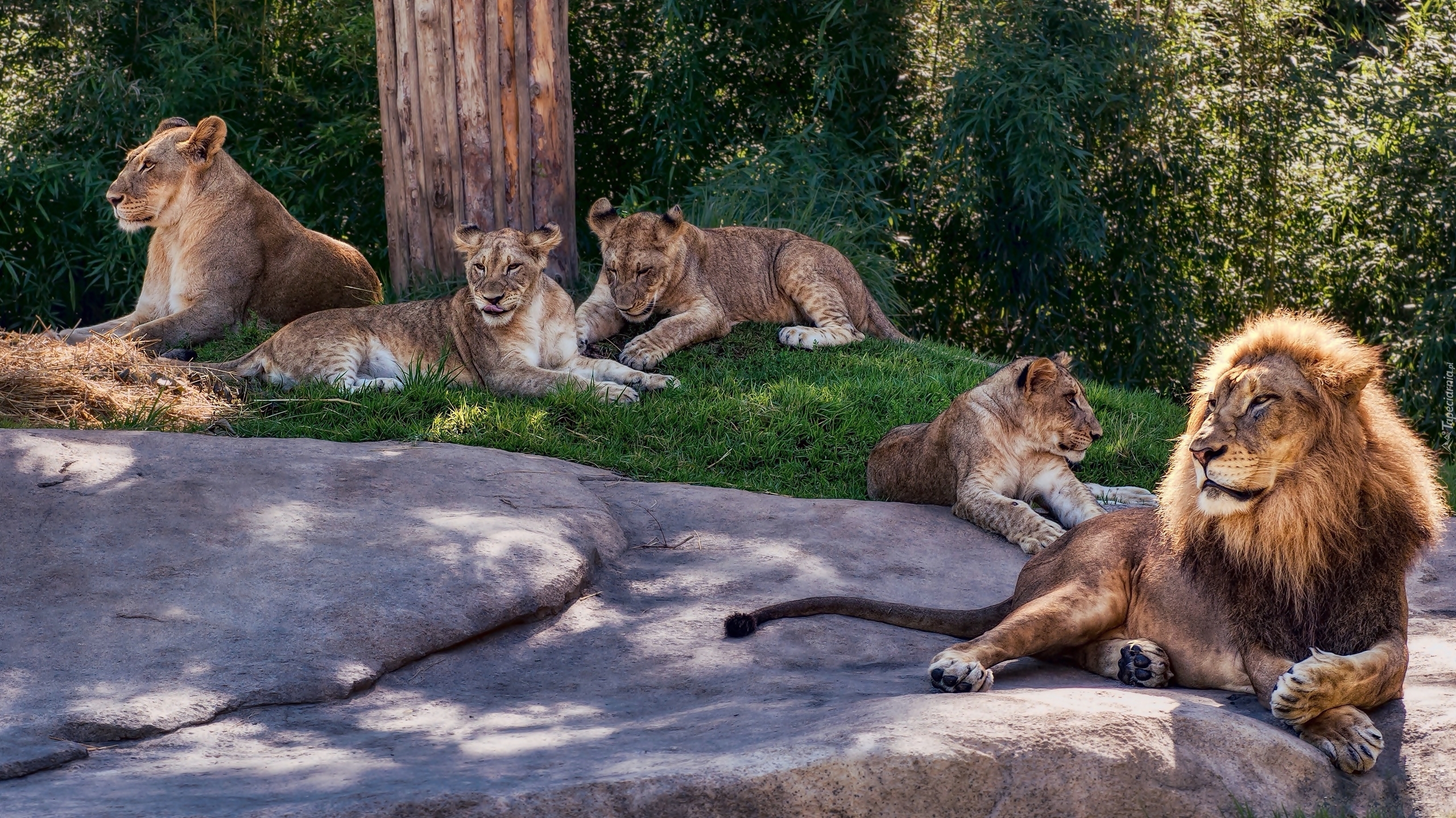 Edytor tapety: Lew i lwice wylegujące się na słońcu