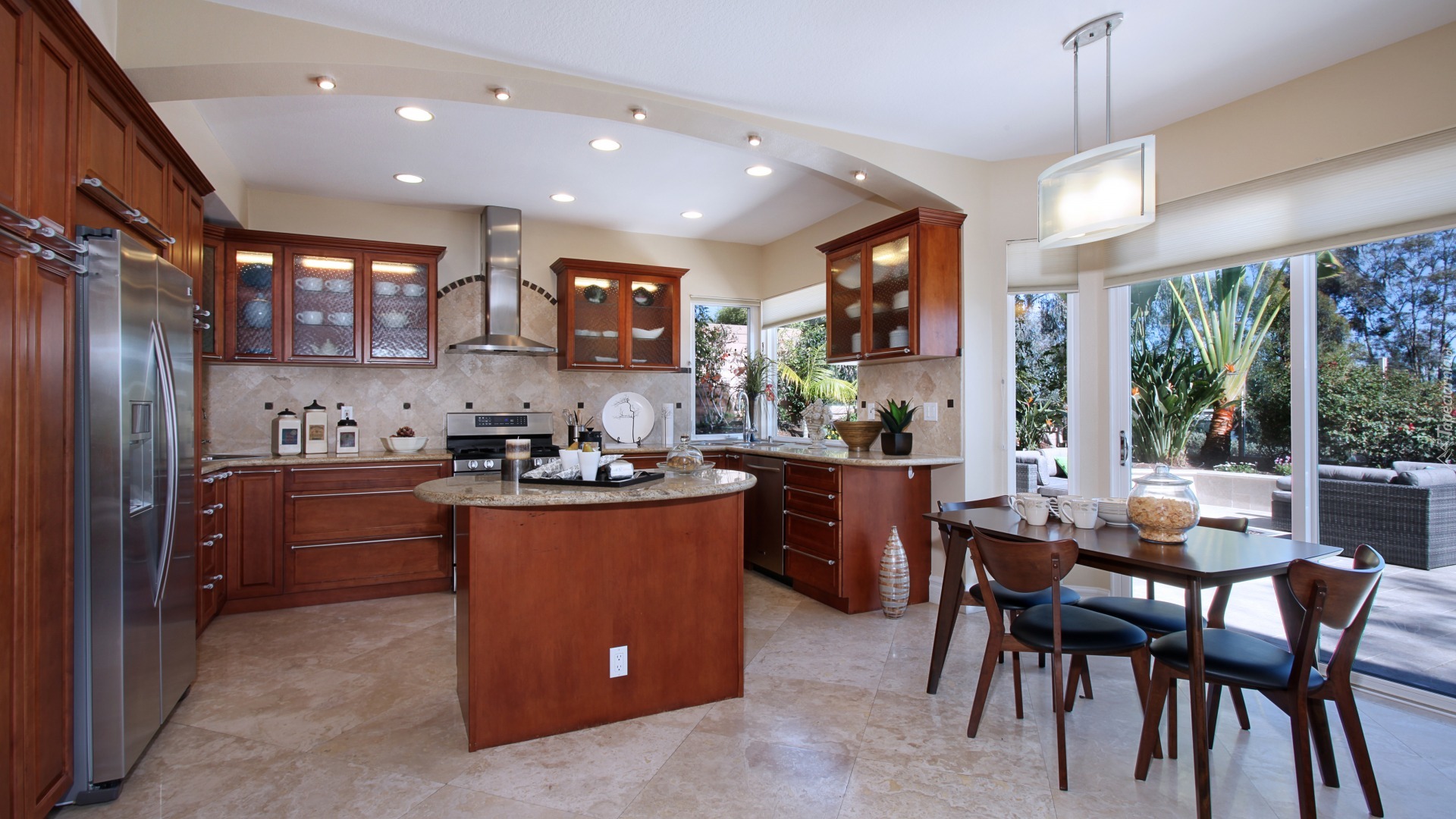 Edytor tapety: Wnętrze umeblowanej kuchni z jadalnią przy oknie
