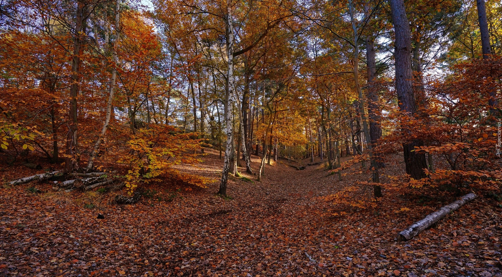 Edytor tapety: Dywan z jesiennych liści w lesie