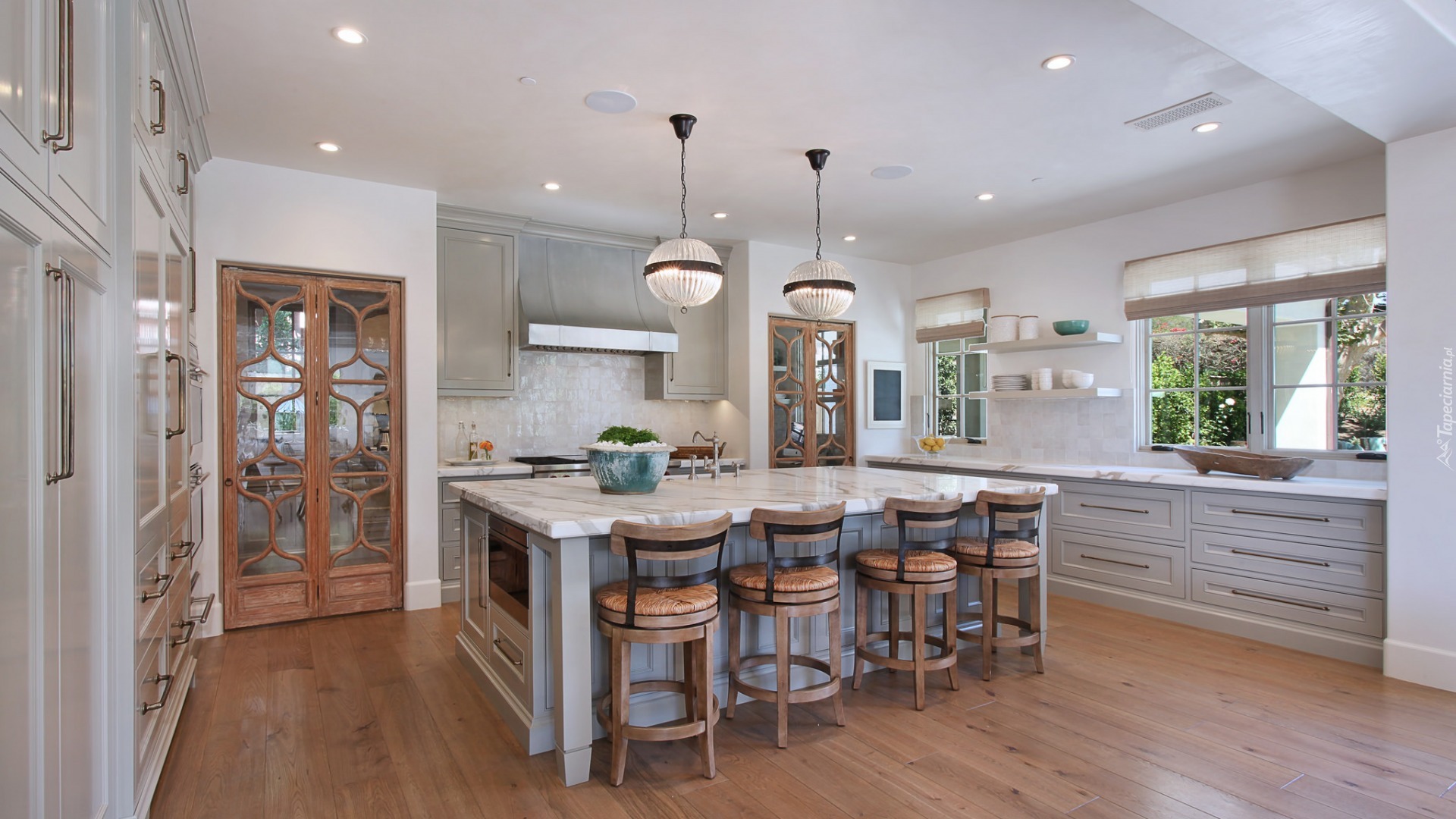 Edytor tapety: Przestronne wnętrze nowoczesnej kuchni z meblami