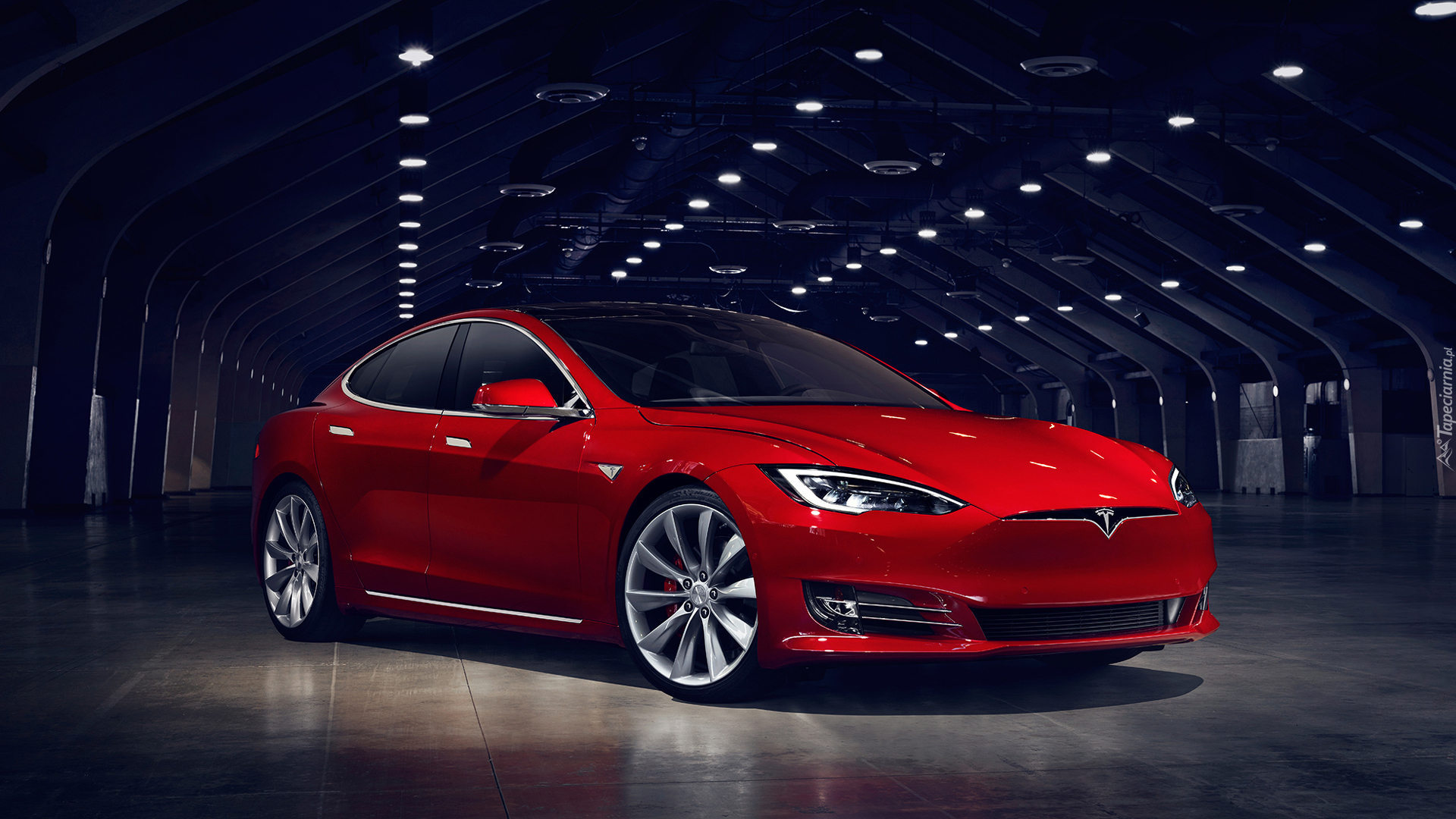 Edytor tapety: Czerwona Tesla Model S P100 rocznik 2016