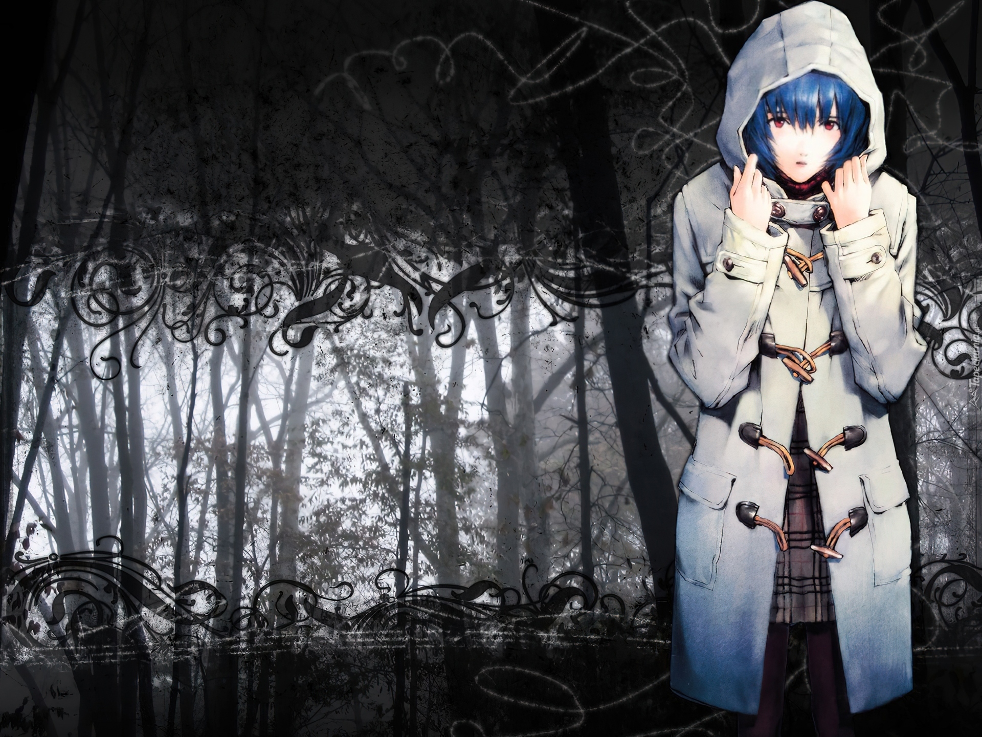 Edytor tapety: płaszcz, postać, las, Neon Genesis Evangelion