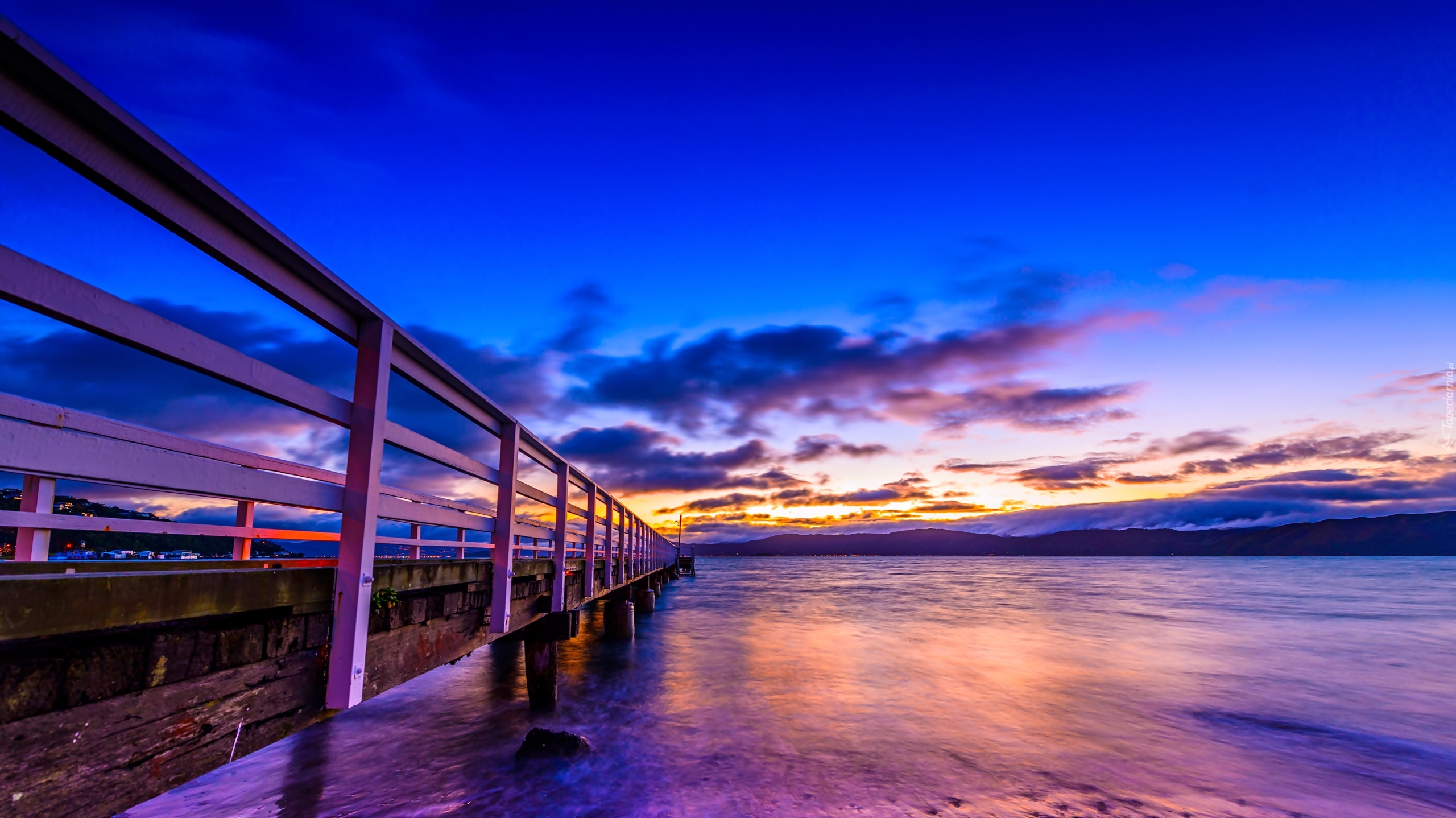 Edytor tapety: Molo na morzu o zachodzie słońca