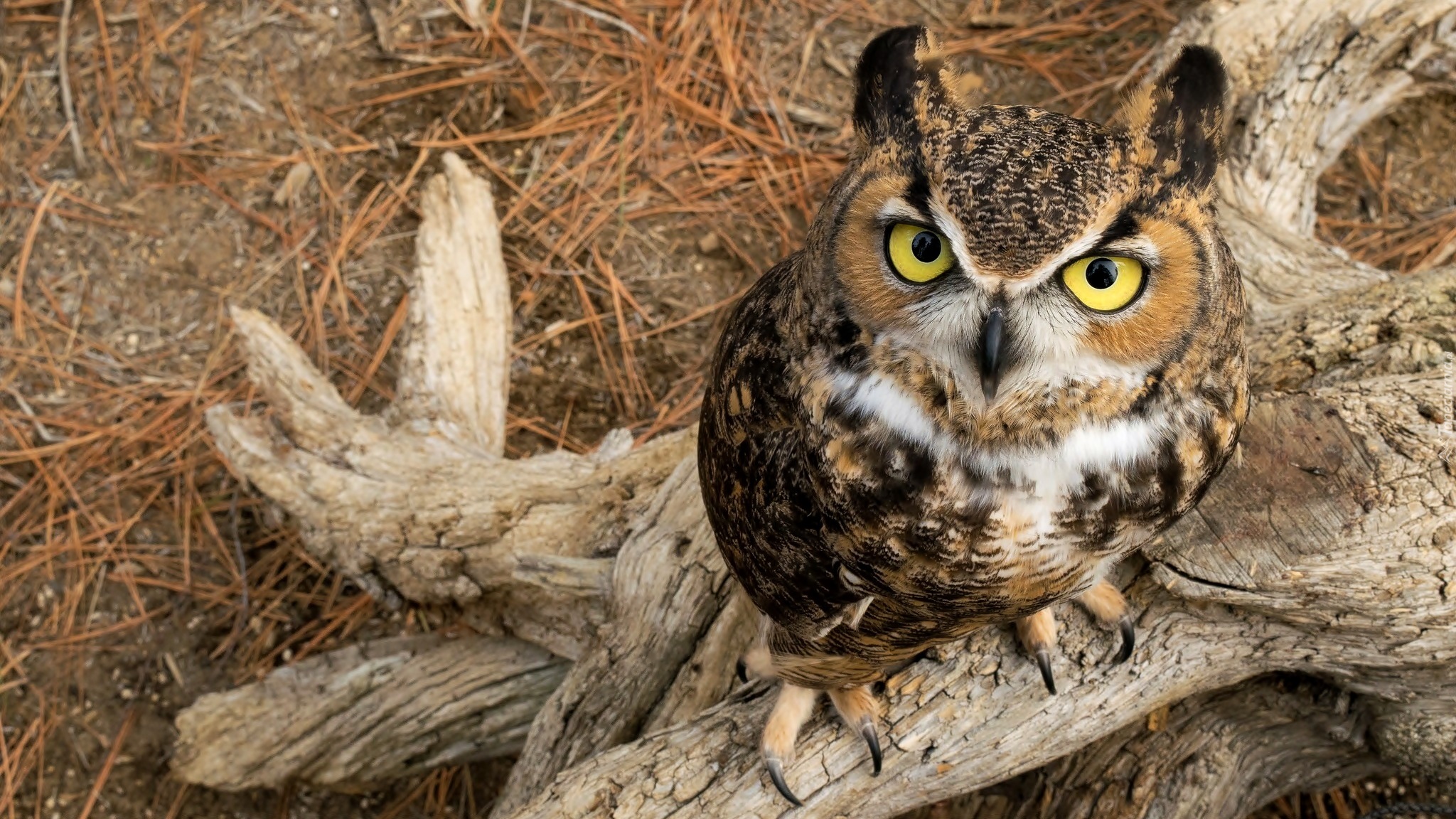 Edytor tapety: Sowa uszata na suchym konarze drzewa