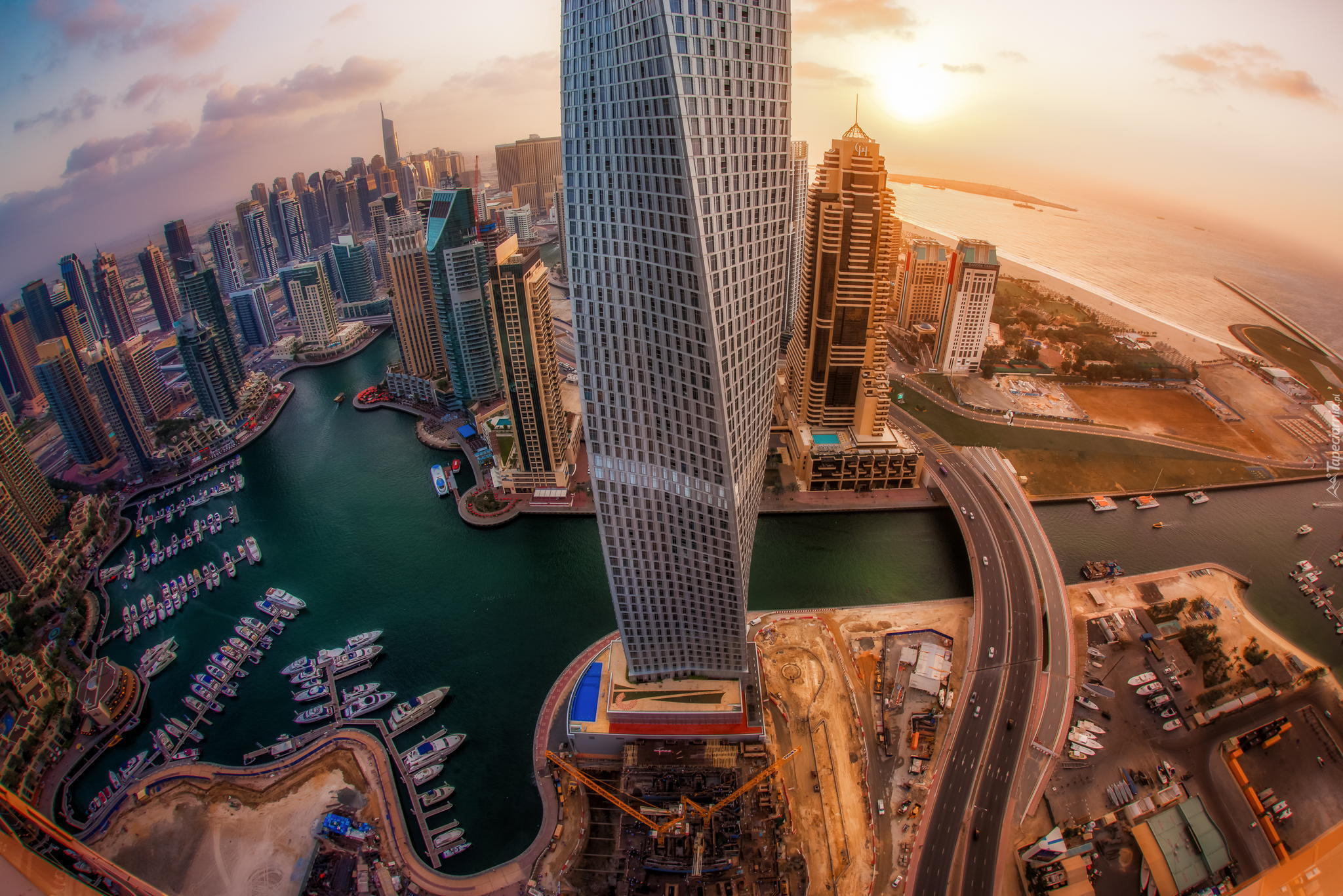 Edytor tapety: Widok na spiralny wieżowiec Cayan Tower w Dubaju