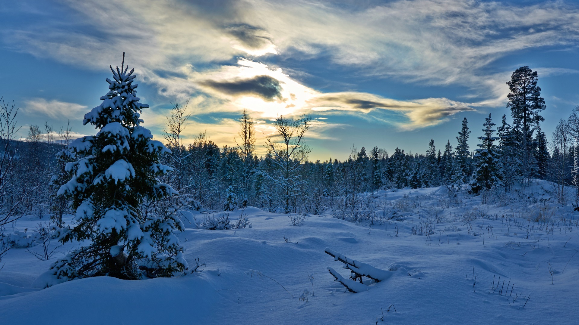 Edytor tapety: Zaśnieżony las wieczorową porą