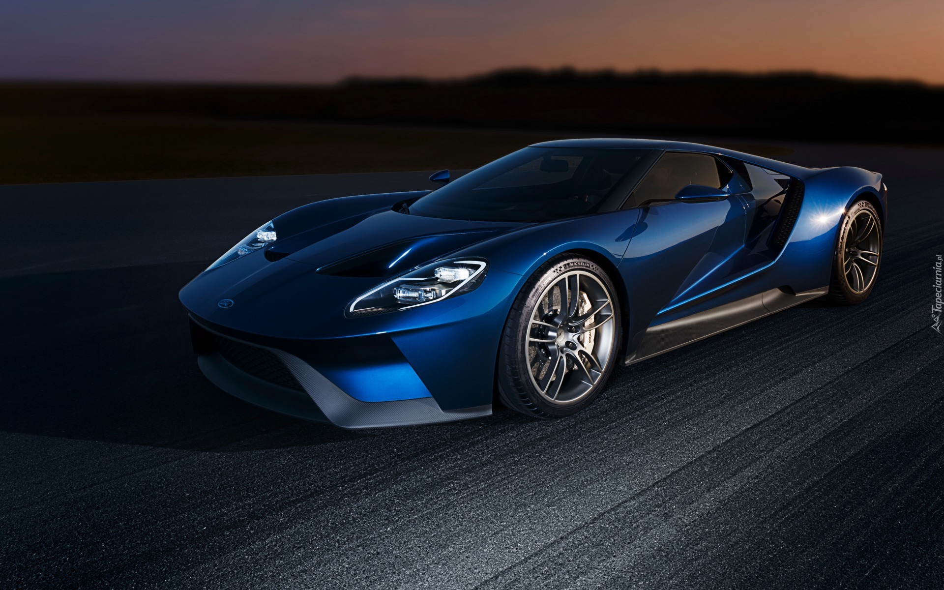 Edytor tapety: Niebieski samochód marki Ford GT rocznik 2016