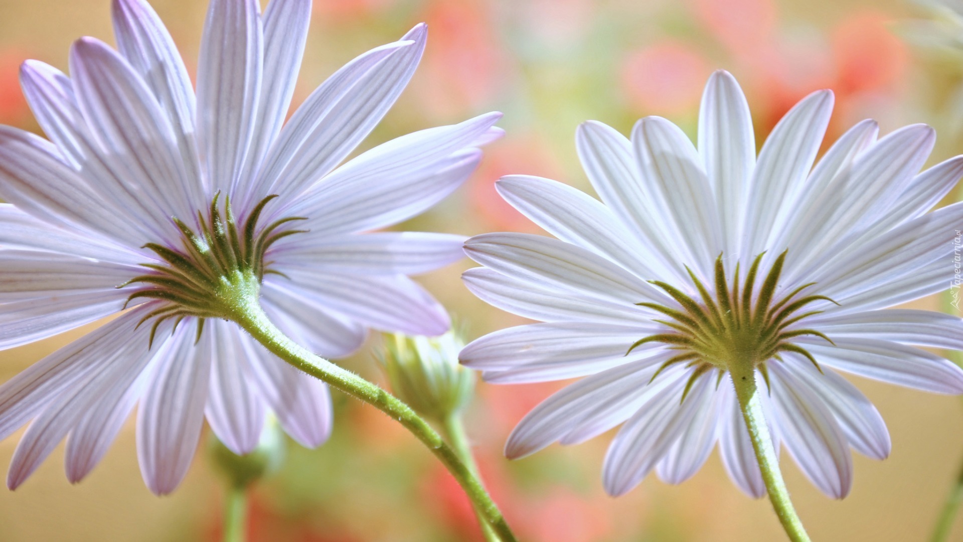 Edytor tapety: Dwa białe kwiaty na rozmytym tle
