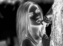 Edytor tapety: Urocza blondynka oparta o drzewo