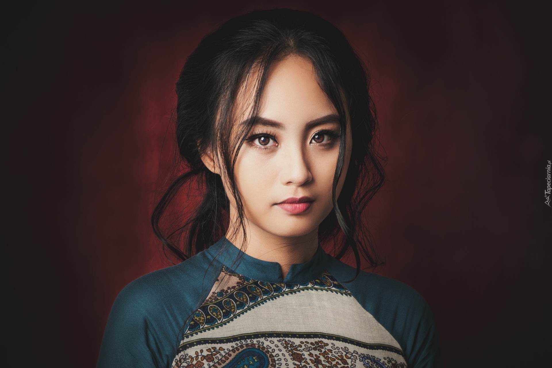 Edytor tapety: Piękna Azjatka z kosmykami włosów na twarzy