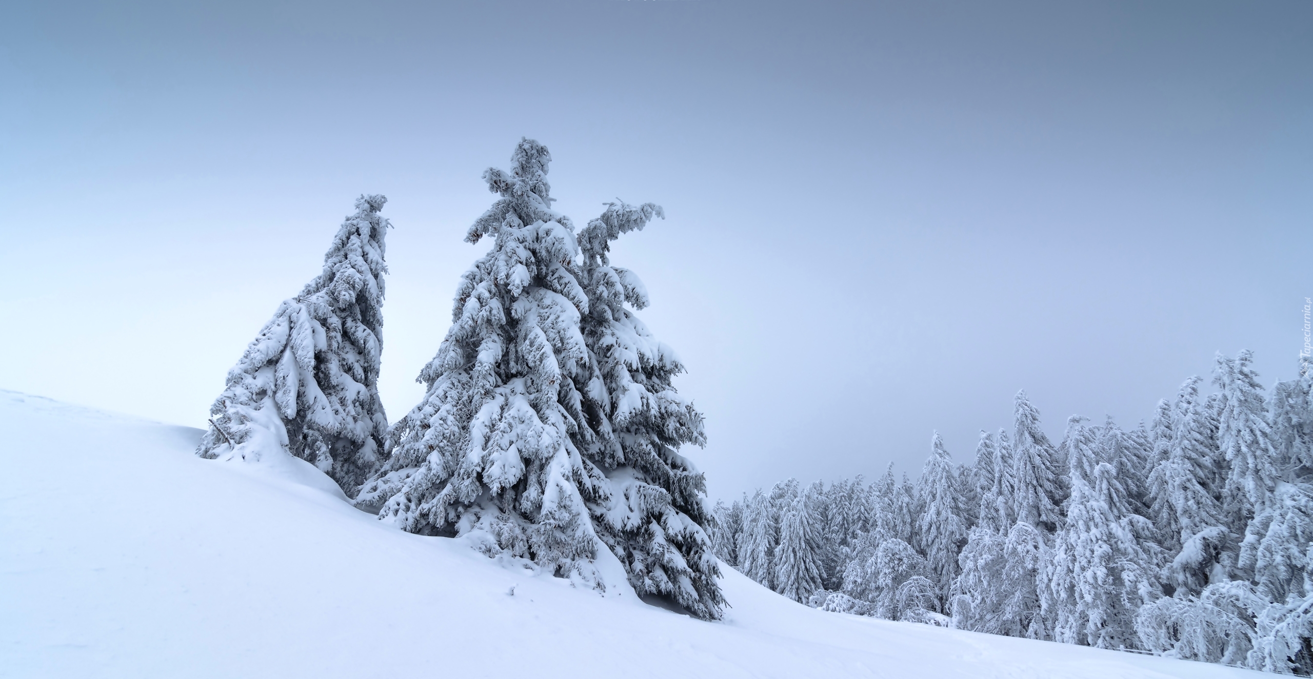 Edytor tapety: Ośnieżone drzewa na górce pod lasem