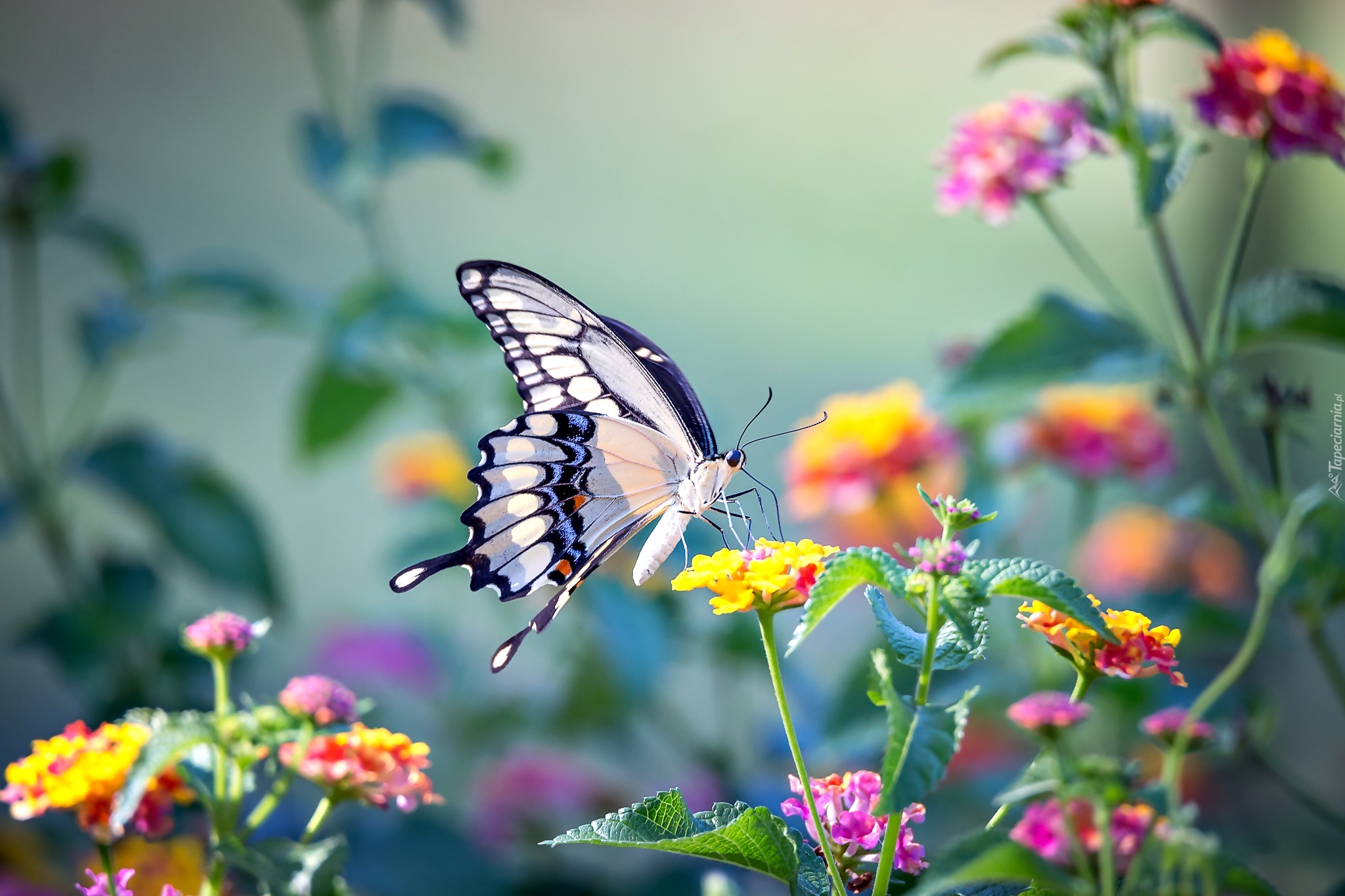 Edytor tapety: Paź królowej odwiedził kolorowe kwiaty
