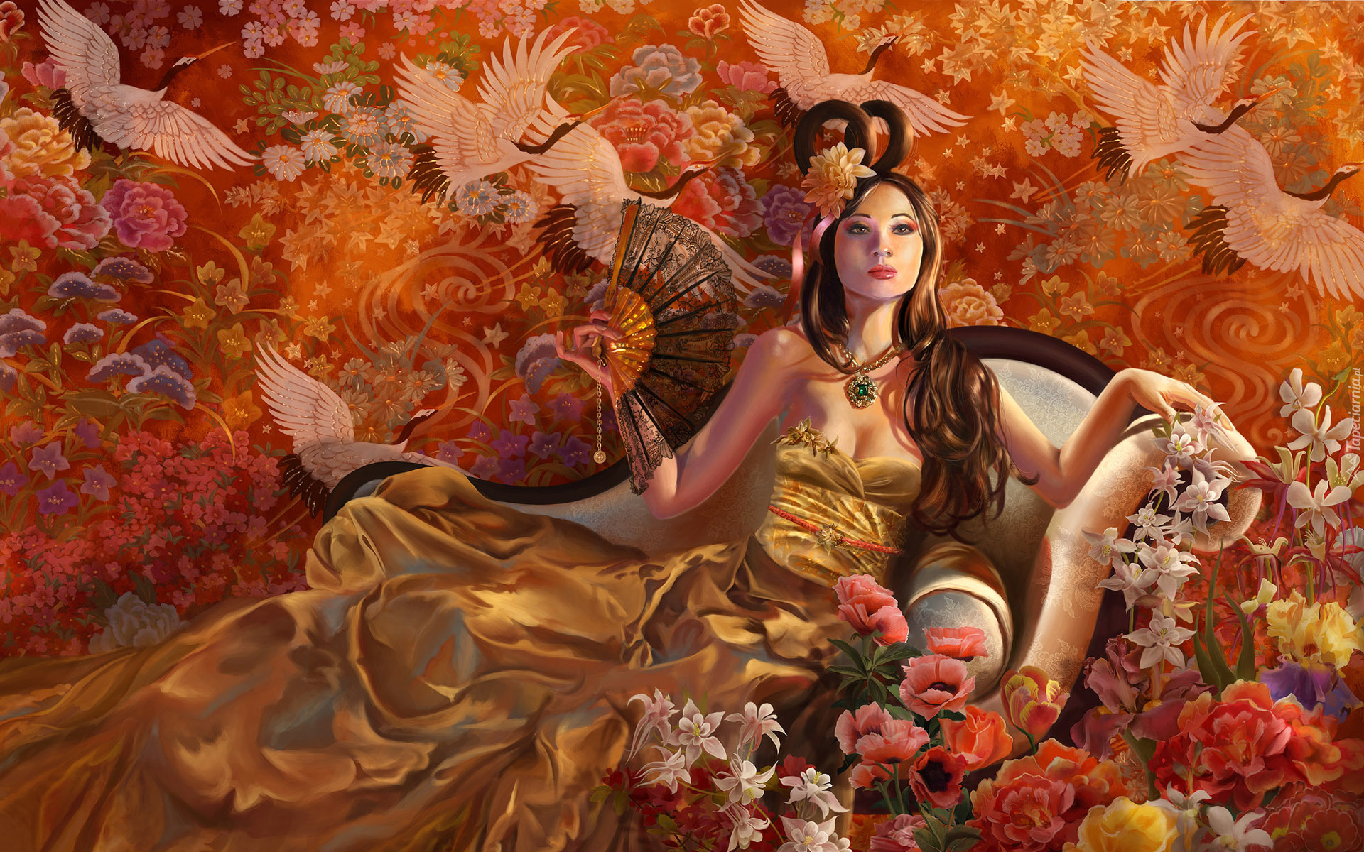 Edytor tapety: Azjatka z wachlarzem w grafice