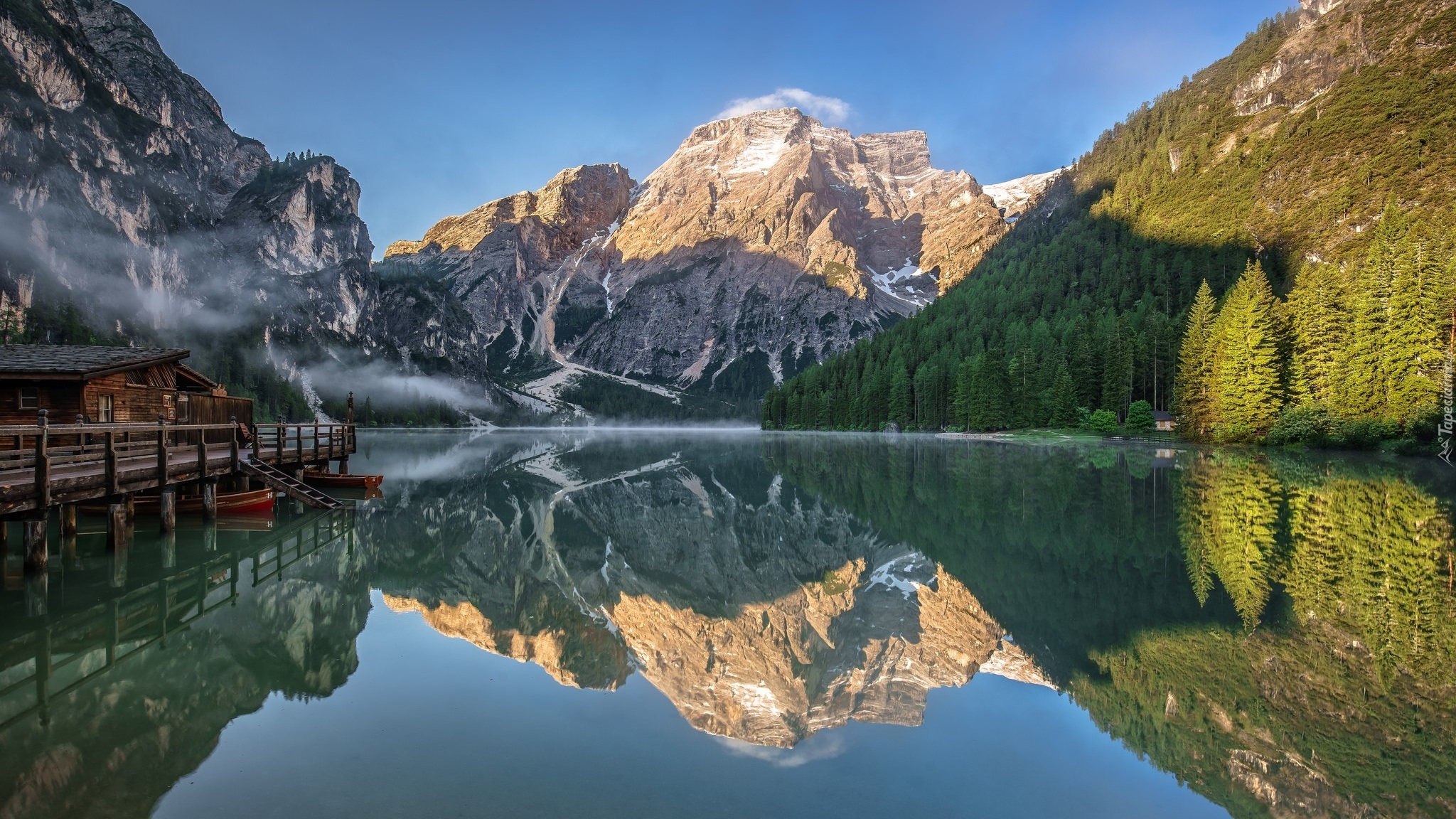 Edytor tapety: Jezioro Pragser Wildsee we włoskich Dolomitach