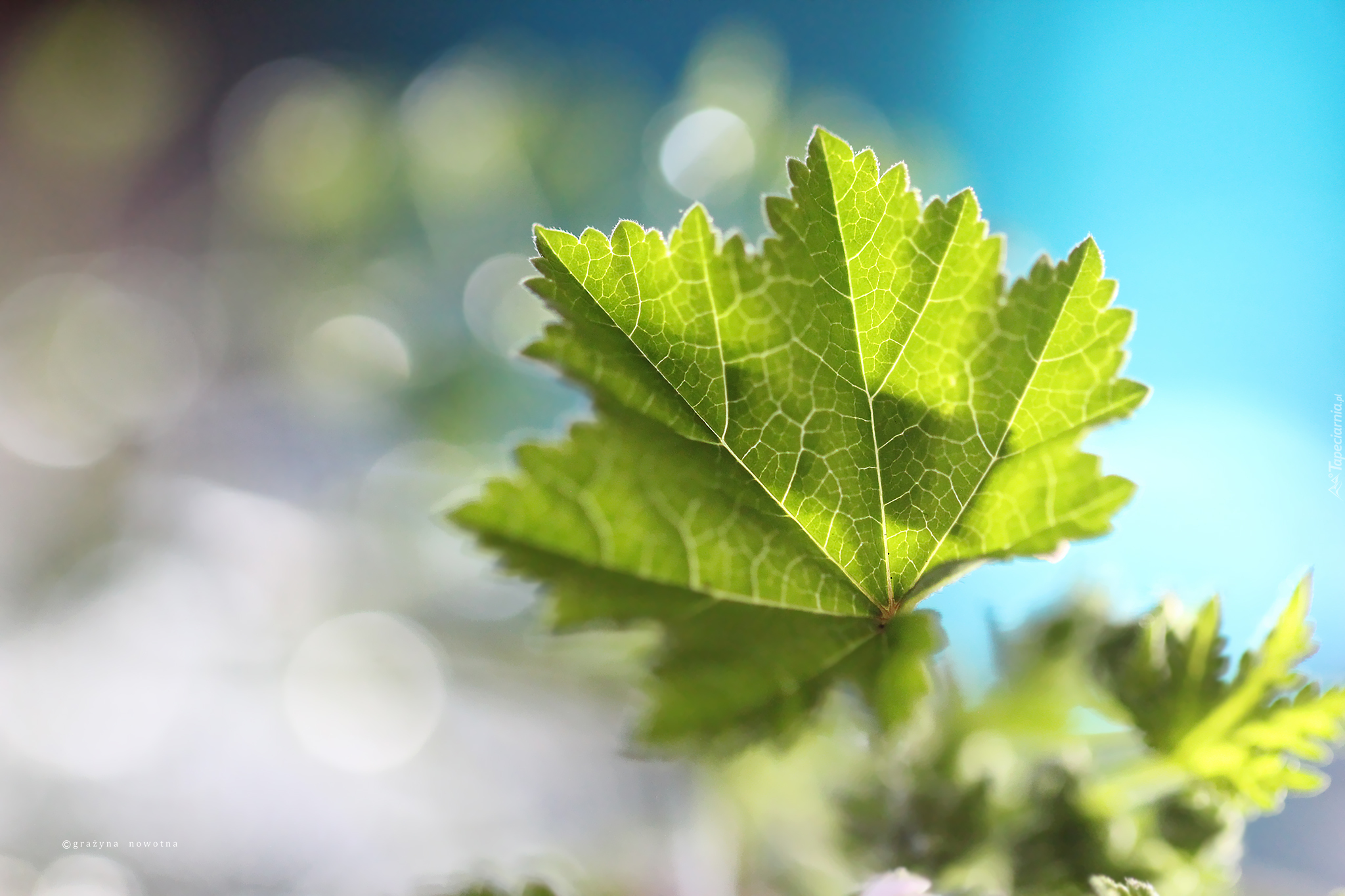 Edytor tapety: Zielony liść na rozmytym tle
