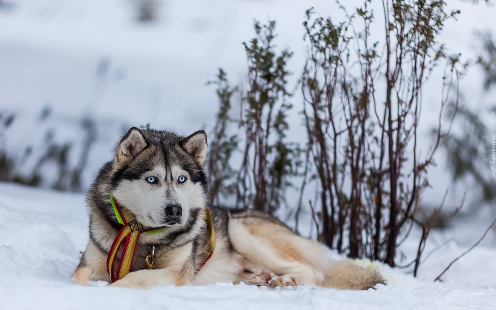 Edytor tapety: Siberian Husky na śniegu