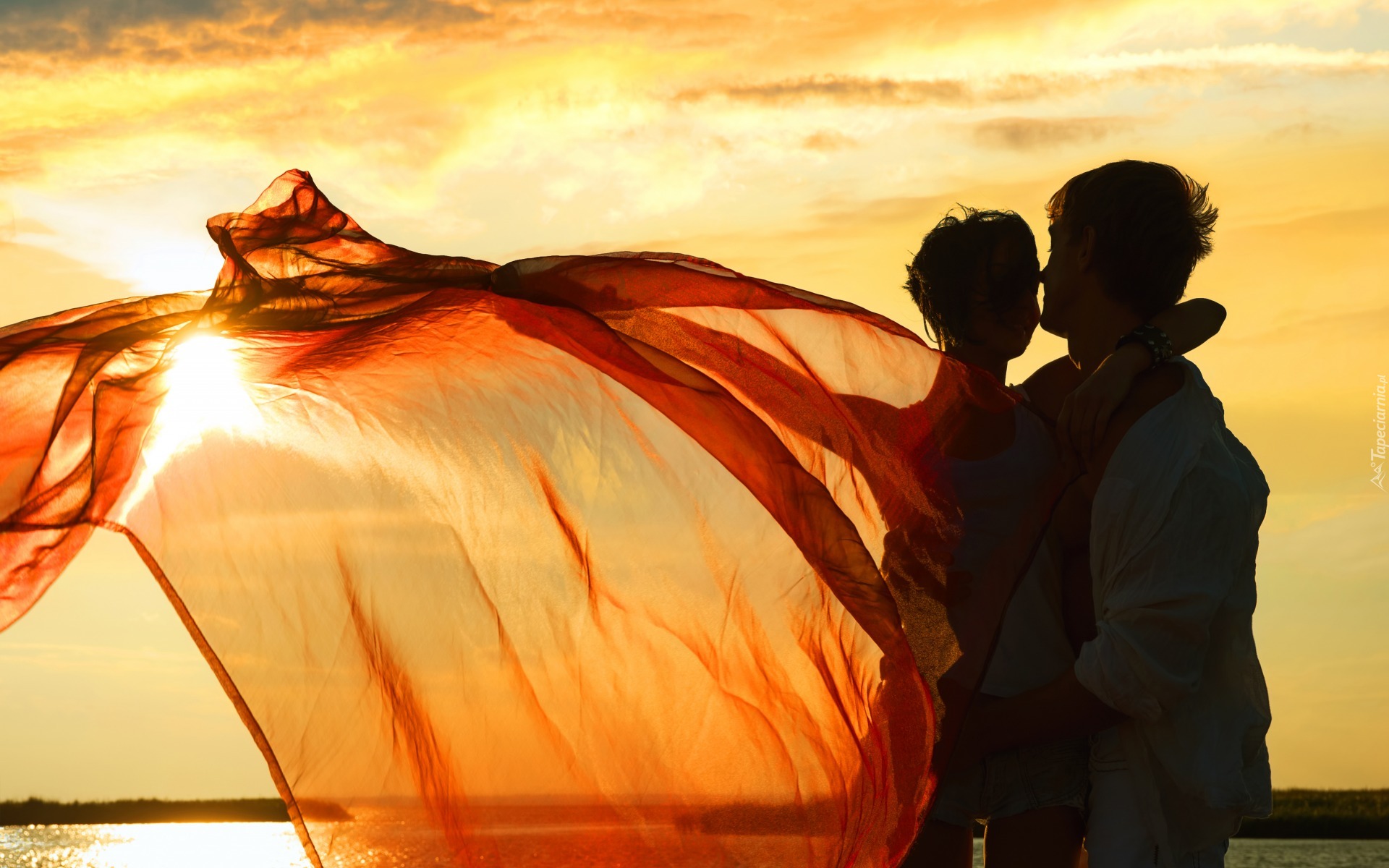 Edytor tapety: Zakochana para w blasku zachodzącego słońca