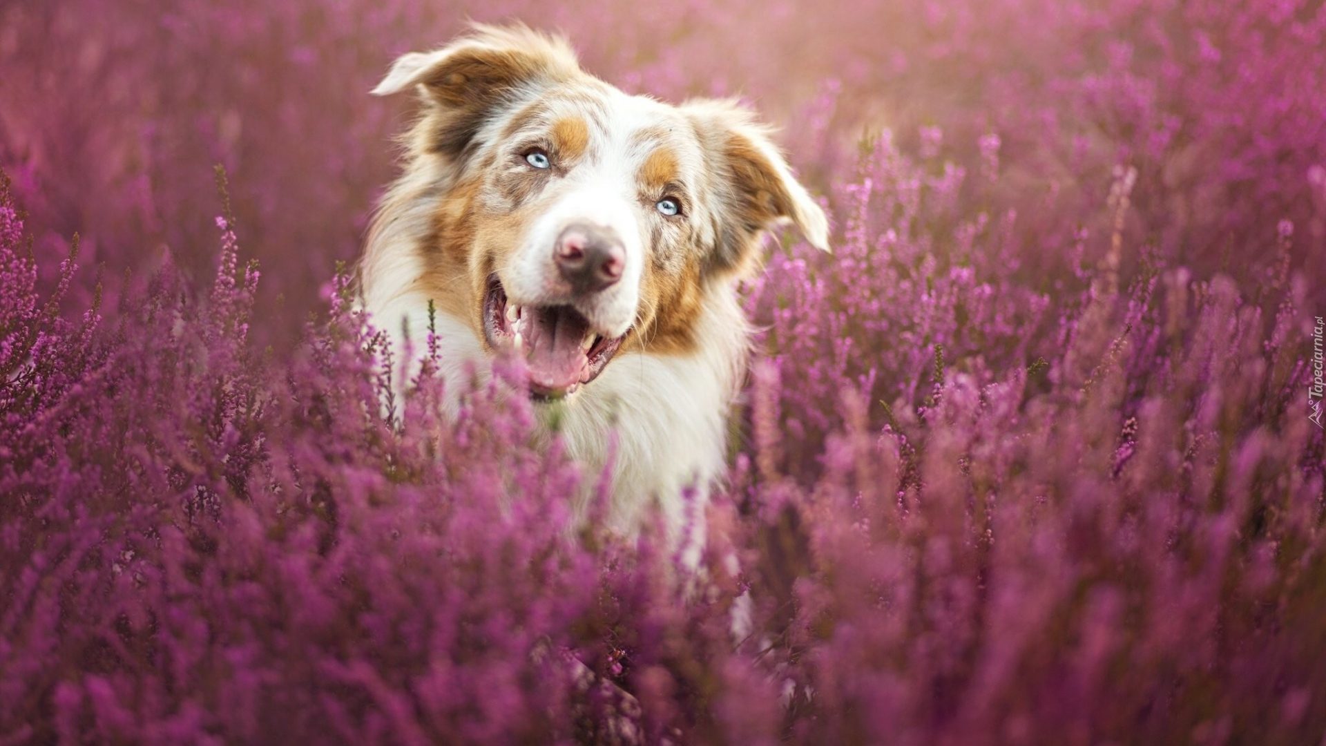 Edytor tapety: Border collie na wrzosowisku