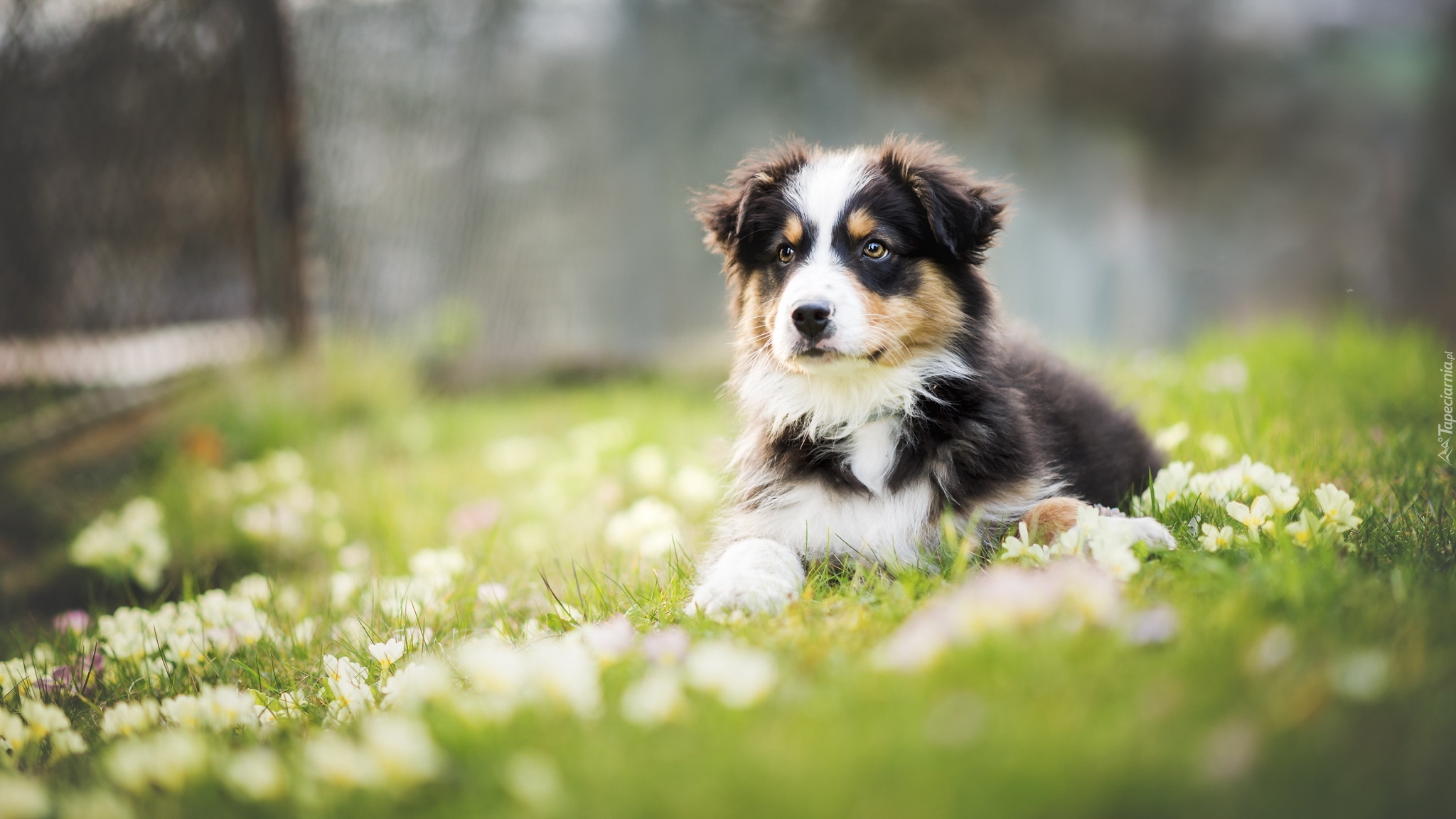 Edytor tapety: Szczeniak owczarka australijskiego na łące