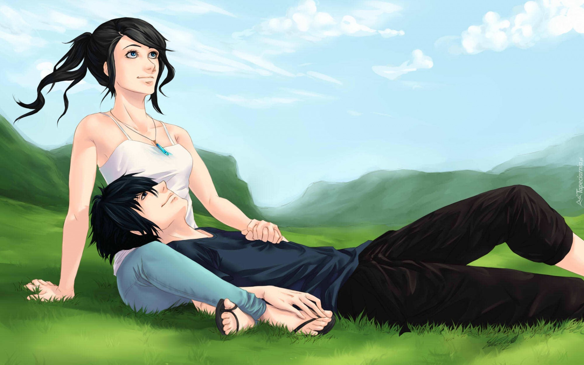 Edytor tapety: Chłopak i dziewczyna na górskiej polanie