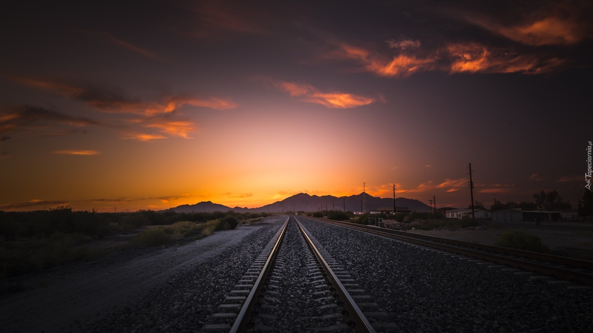 Edytor tapety: Zachodzące słońce nad torami kolejowymi
