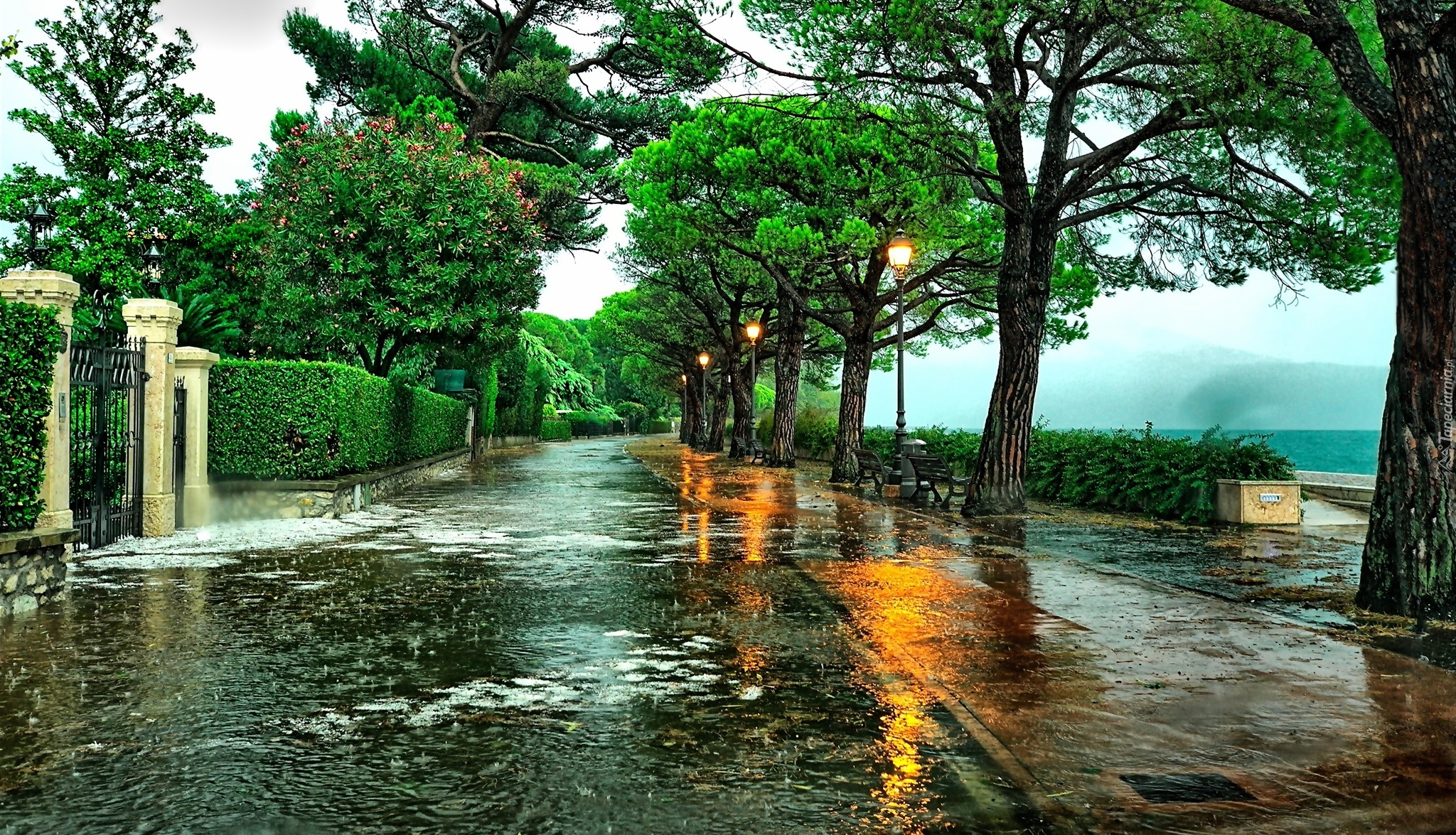 Edytor tapety: Ulica w strugach deszczu we włoskim Toscolano-Moderno