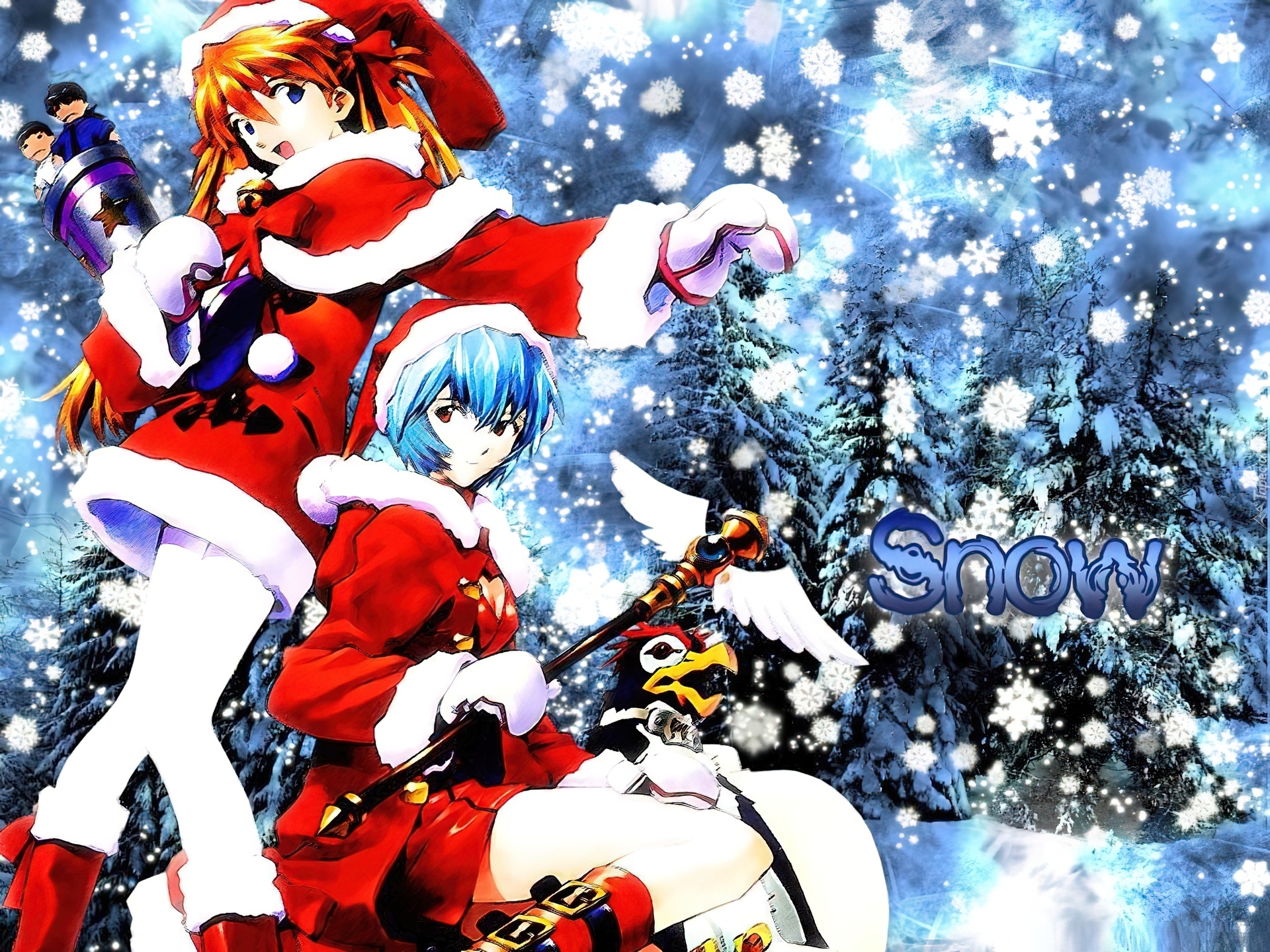 Edytor tapety: Neon Genesis Evangelion, snow, kobiety, choinka
