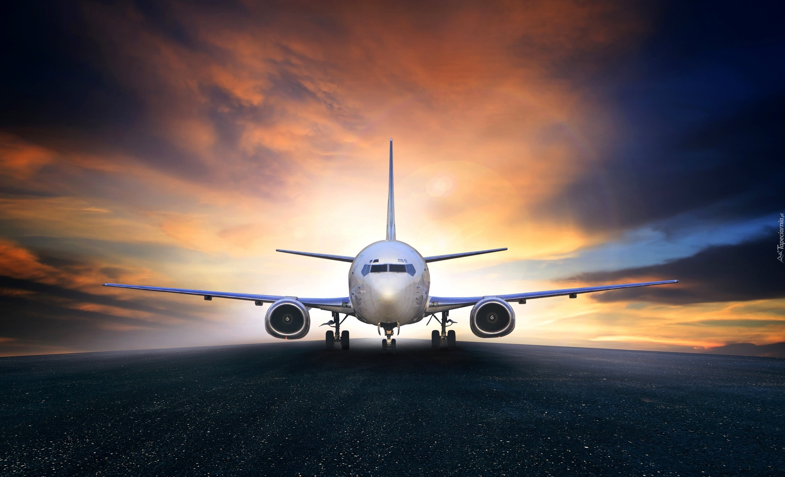 Edytor tapety: Samolot pasażerski w świetle zachodzącego słońca