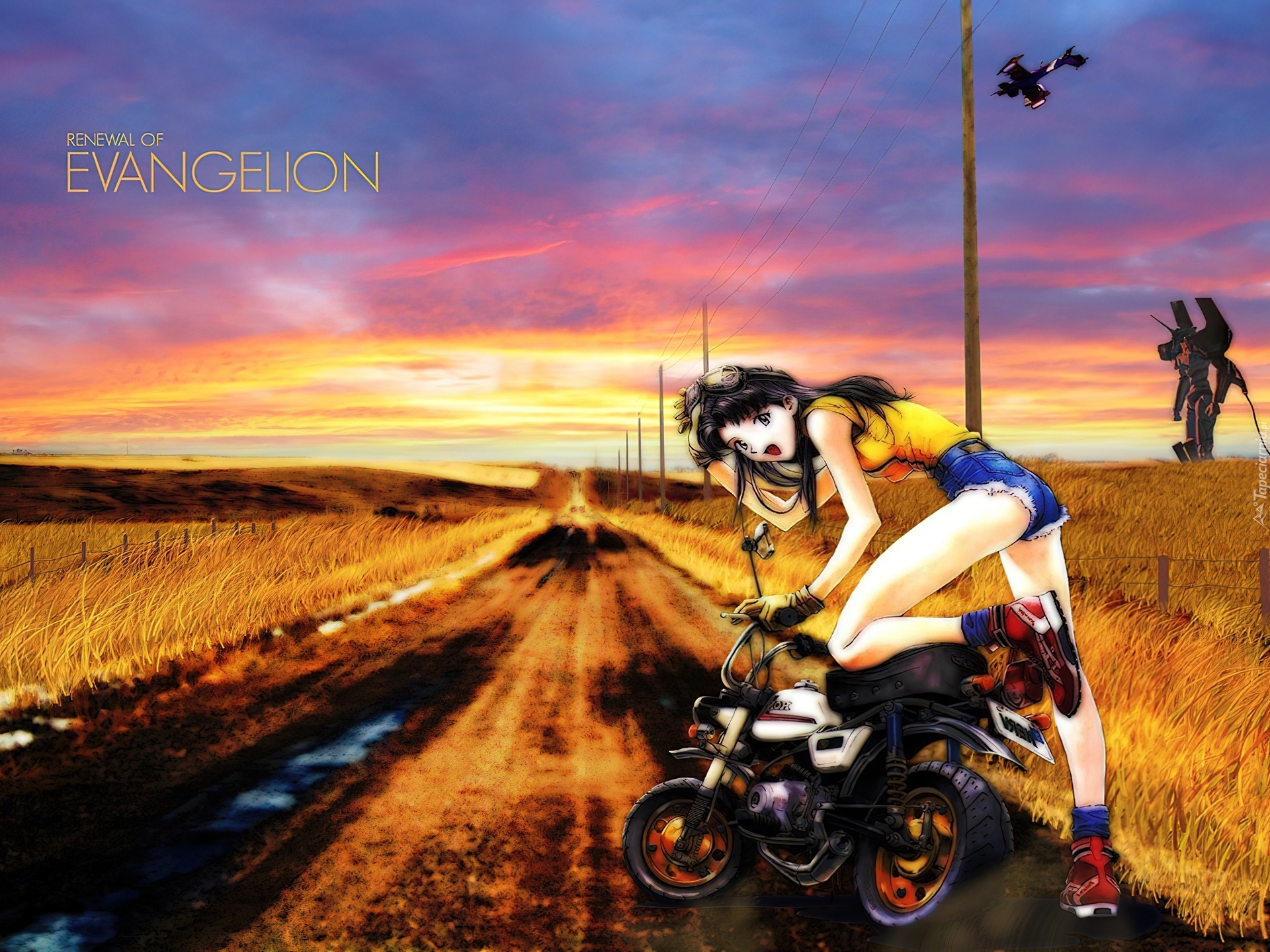 Edytor tapety: Neon Genesis Evangelion, droga, kobieta, motor