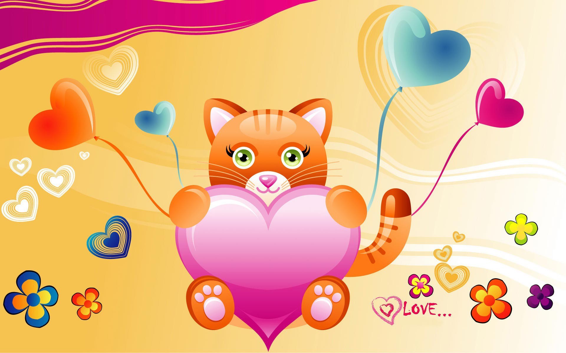 Edytor tapety: Walentynkowa grafika z kotkiem i serduszkami w 2D