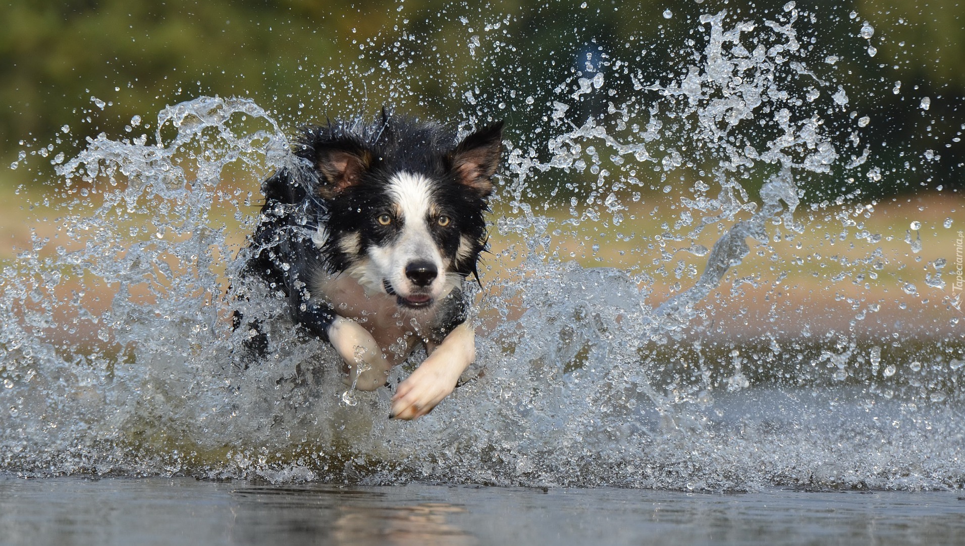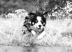 Edytor tapety: Pies border collie biegnąc rozbryzguje wodę