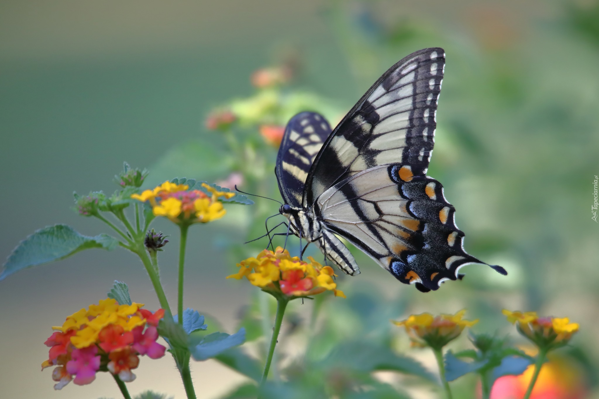 Edytor tapety: Paź królowej na kolorowych kwiatach